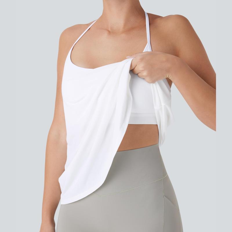 5. Halara Softlyzero Airy Halter Backless Draped Cool Touch Yoga Sports Top-UPF50+