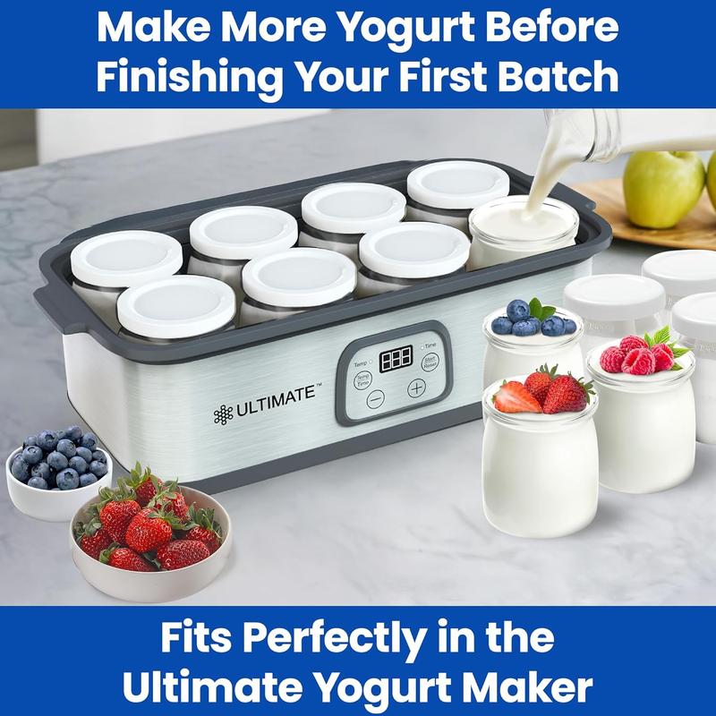 ·Make more yogurt before finishing your first batch – No need to wait until your first batch is empty before starting another. This makes the Ultimate Yogurt Jars ideal for families or yogurt lovers who enjoy probiotic-rich yogurt. Never run out of yogurt with the Ultimate Yogurt Jars.