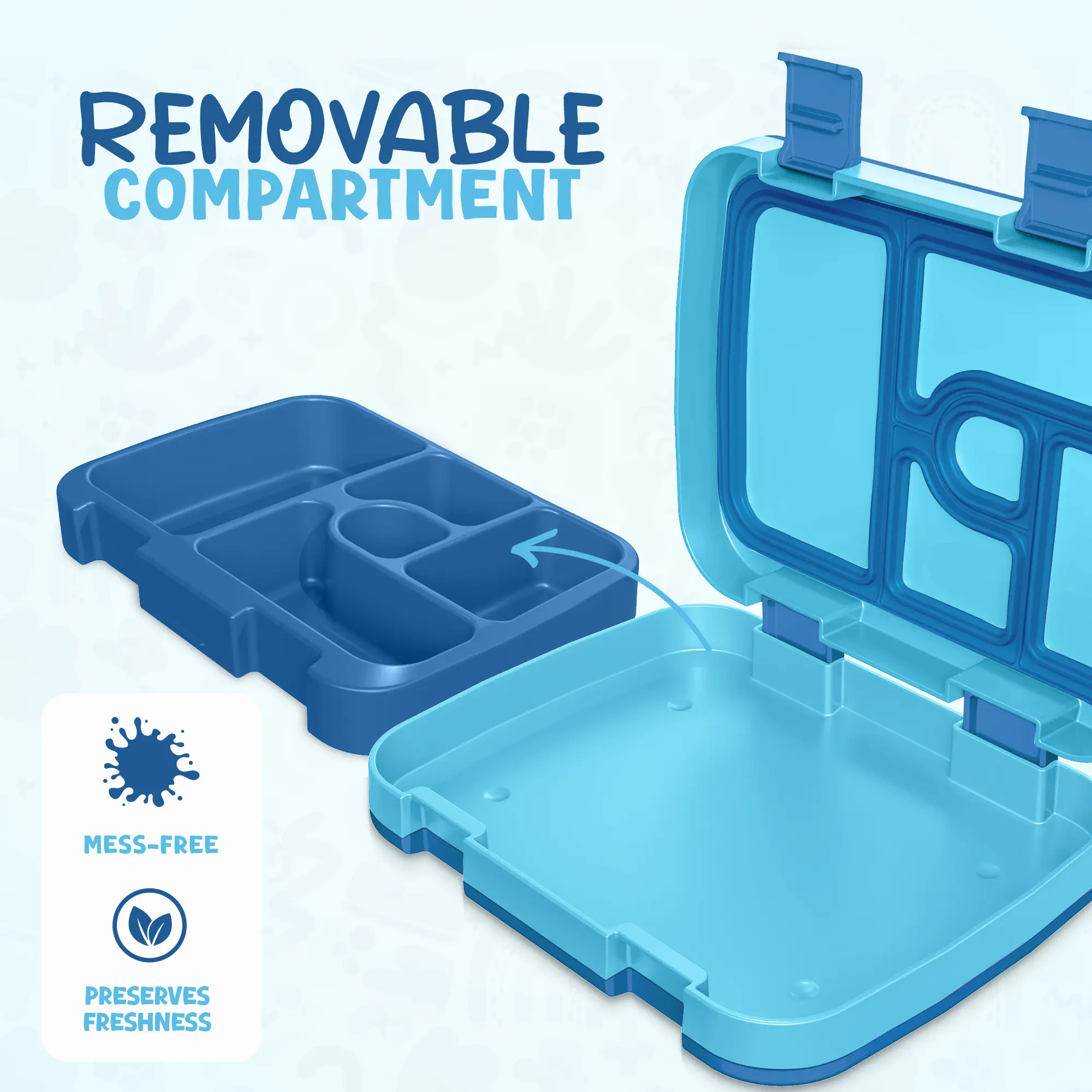 ·Ideal 5-compartment design: The Bento Box features five spacious sections, perfect for kids' diverse lunch needs. This thoughtful layout encourages balanced meals and makes lunchtime more exciting for children.