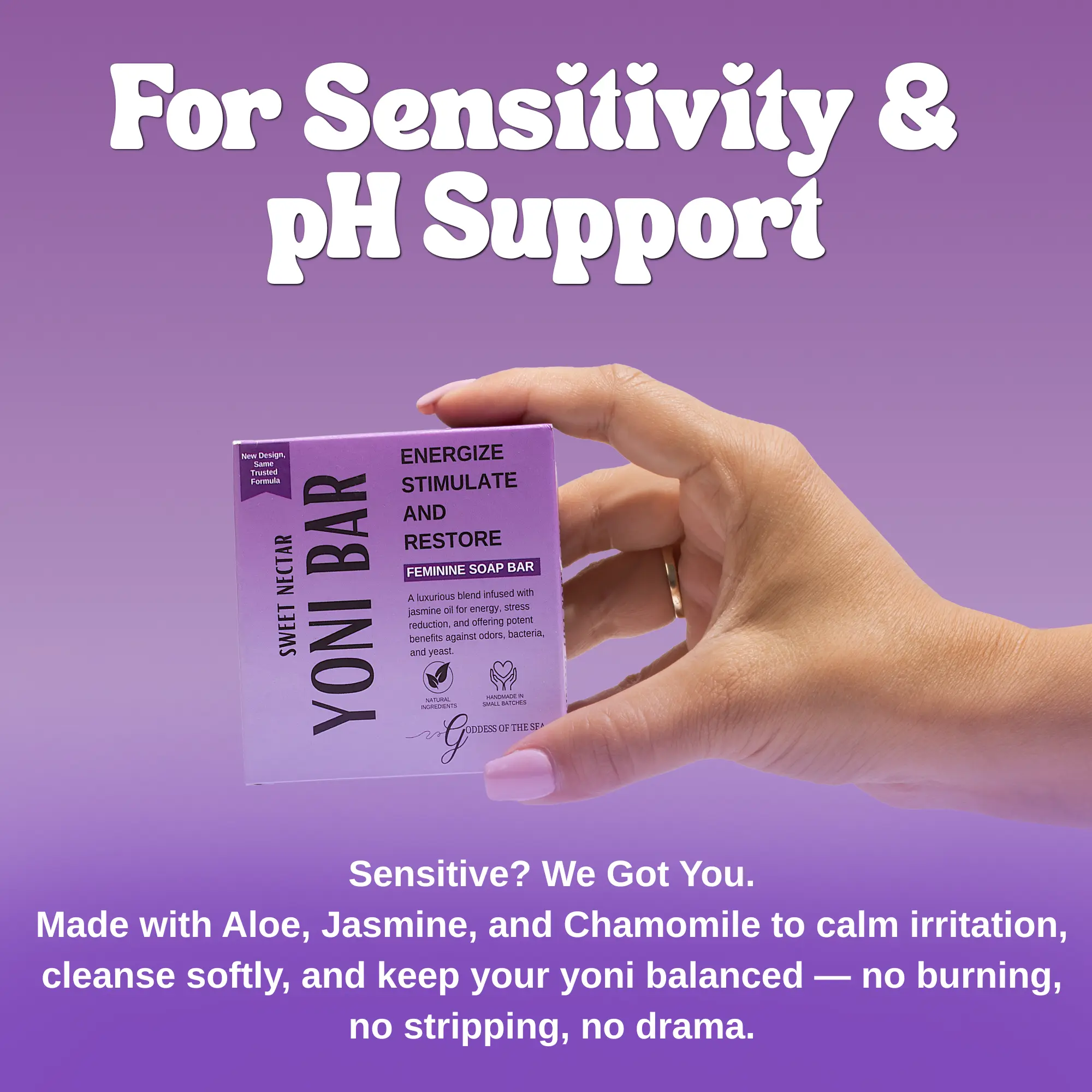 The Sweet Nectar Bar is the sensitive version of our premium Yoni Bar, offering the same thoughtful care with an extra-gentle formula. Feel confident, fresh, and empowered every day.