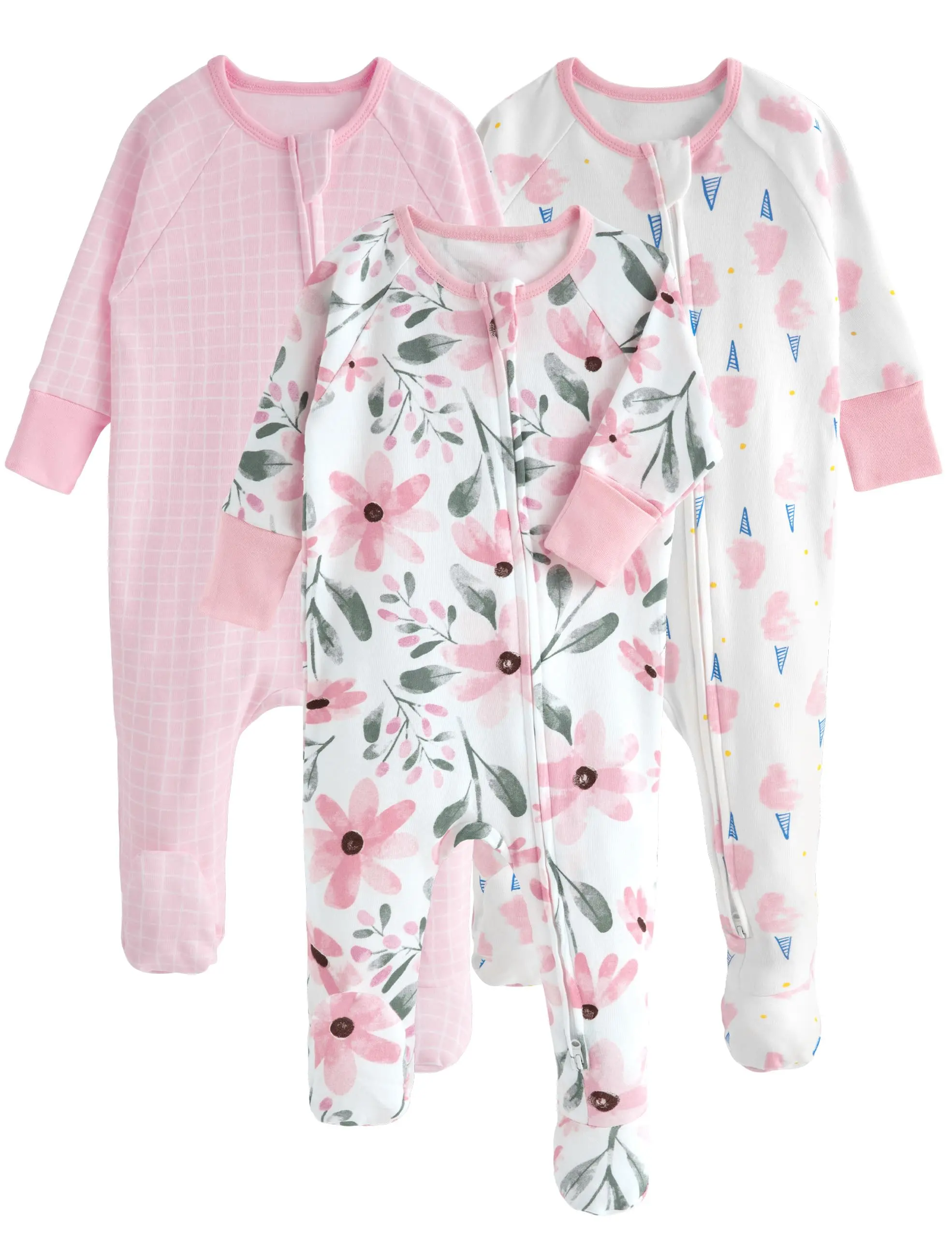 5. Yoofoss Baby Pajamas 100% Organic Cotton Baby Sleepers for Newborn 0-3 3-6 6-9 Months Boys Girl Clothes 3pcs Footed PJs