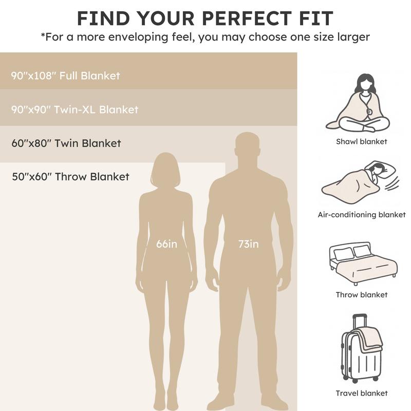 I cannot believe I am going to say this, I LOVE this throw. I did not buy the twin size because I did not want the weight on my feet or toes. The throw is the perfect size, there is not any added weight to my toes or feet. The color I bought is beautiful, cream. It is extremely soft and comfortable.