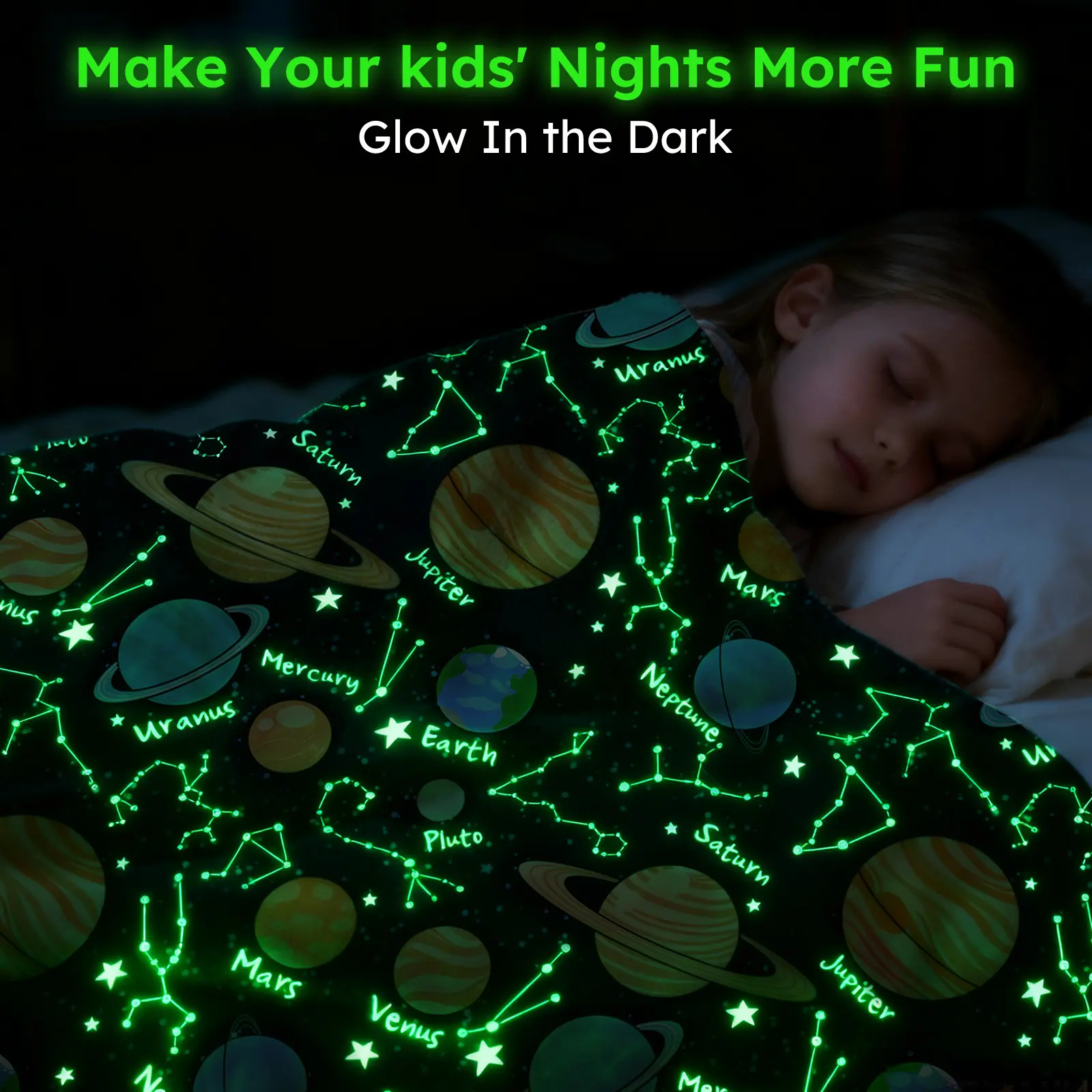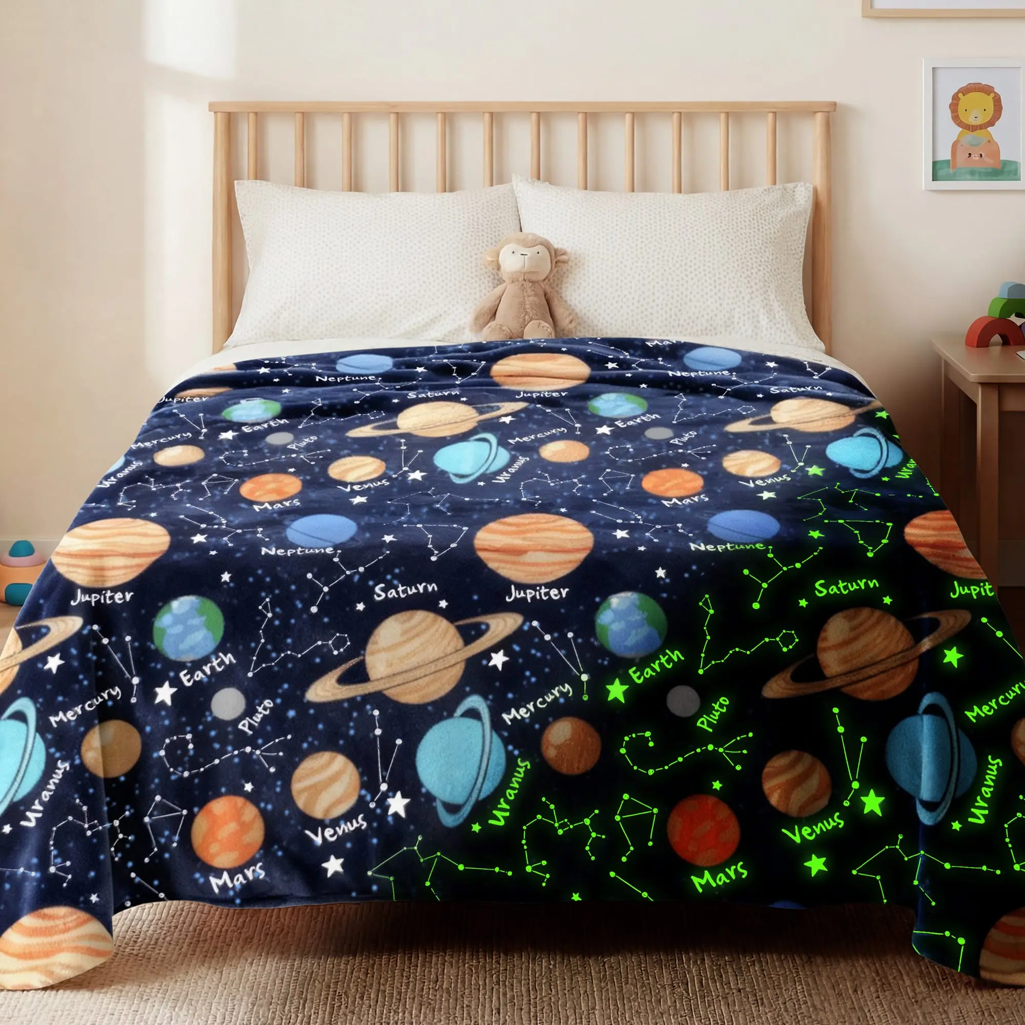 Yoofoss Glow in The Dark Fleece Throw Blanket for Kids, Soft Warm Cozy Cute Glowing Blankets for Bed Sofa Couch Unique Gifts, Toddler Blankets for Boys Girls, Twin Size 61" x 81"