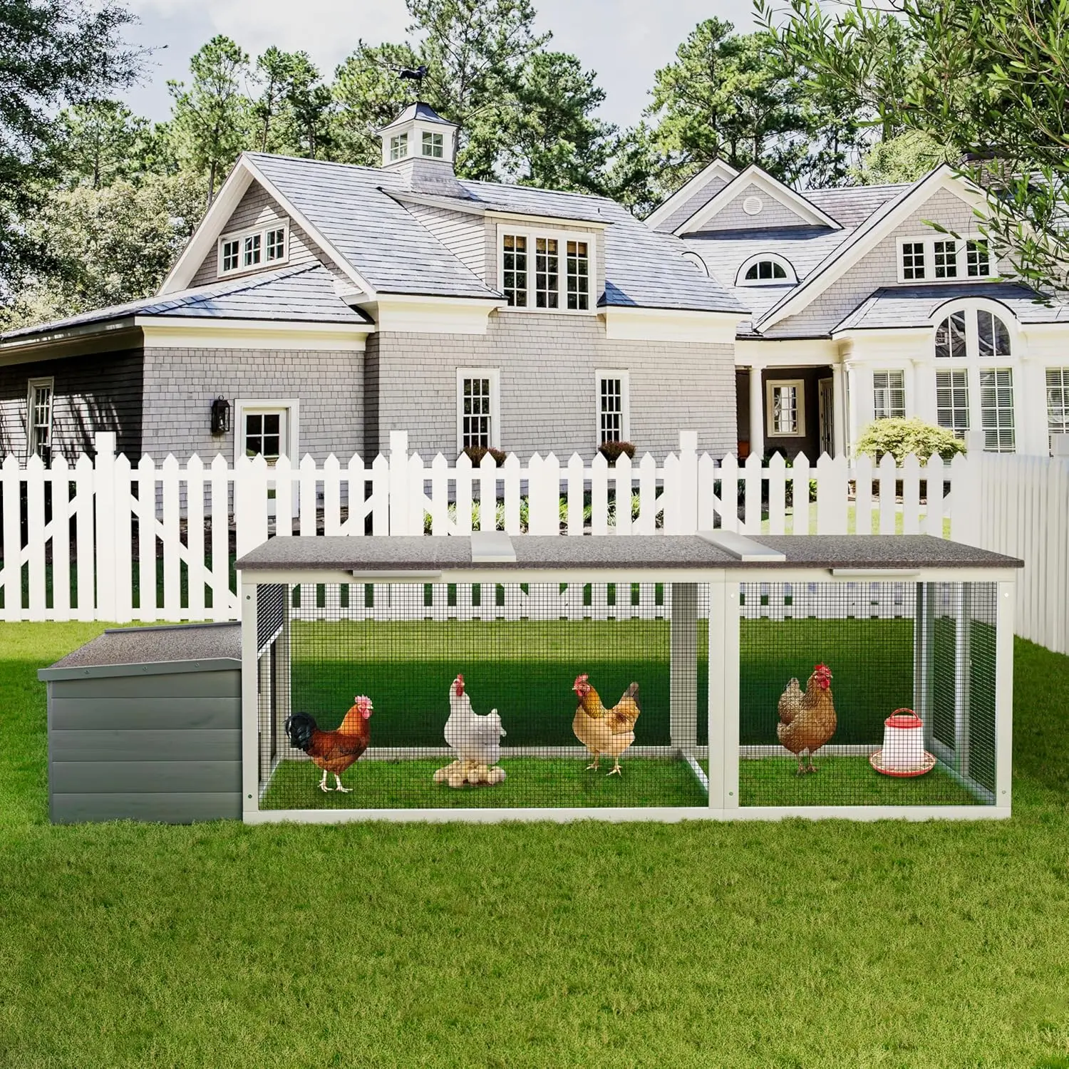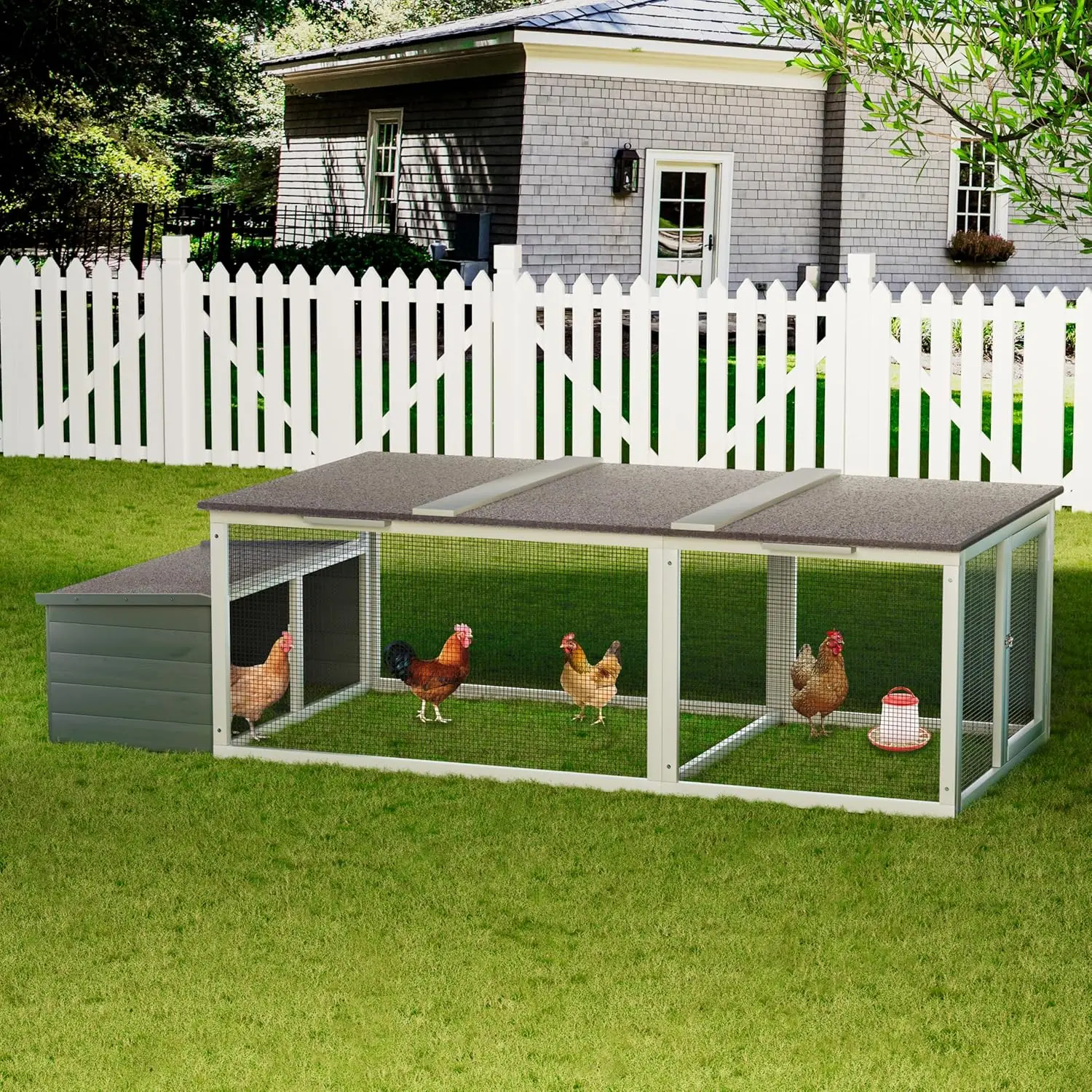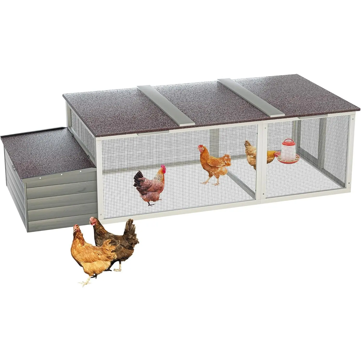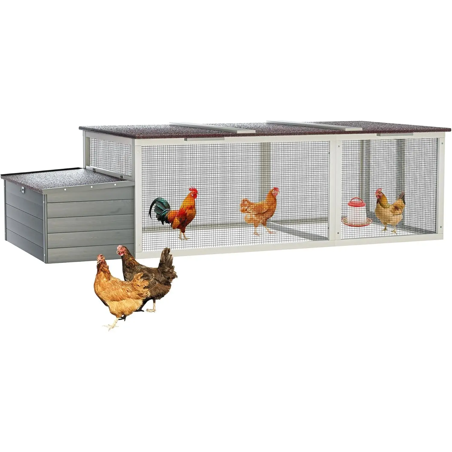 ·Weatherproof Asphalt Roof: Equipped with an all-weather asphalt roof that protects your poultry from sun, rain, and snow, making it perfect for outdoor year-round use.