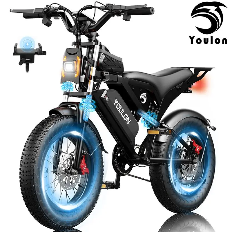 48V 20Ah Removable Battery: UL 2849 certified, 45 miles (electric mode) / 85 miles (pedal assist) range, 6–7 hour full charge.