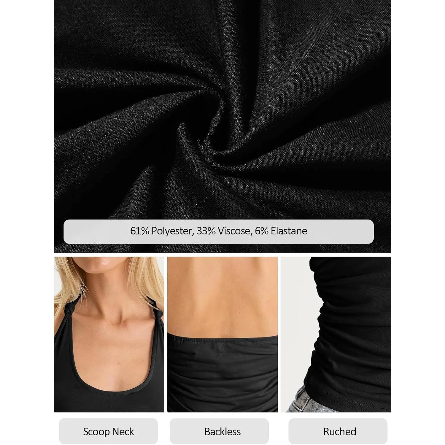 5. Yousify Halter Tops for Women Sexy Deep Scoop Neck Tank Top Y2k Going Out Fitted Backless Sleeveless Summer Tops