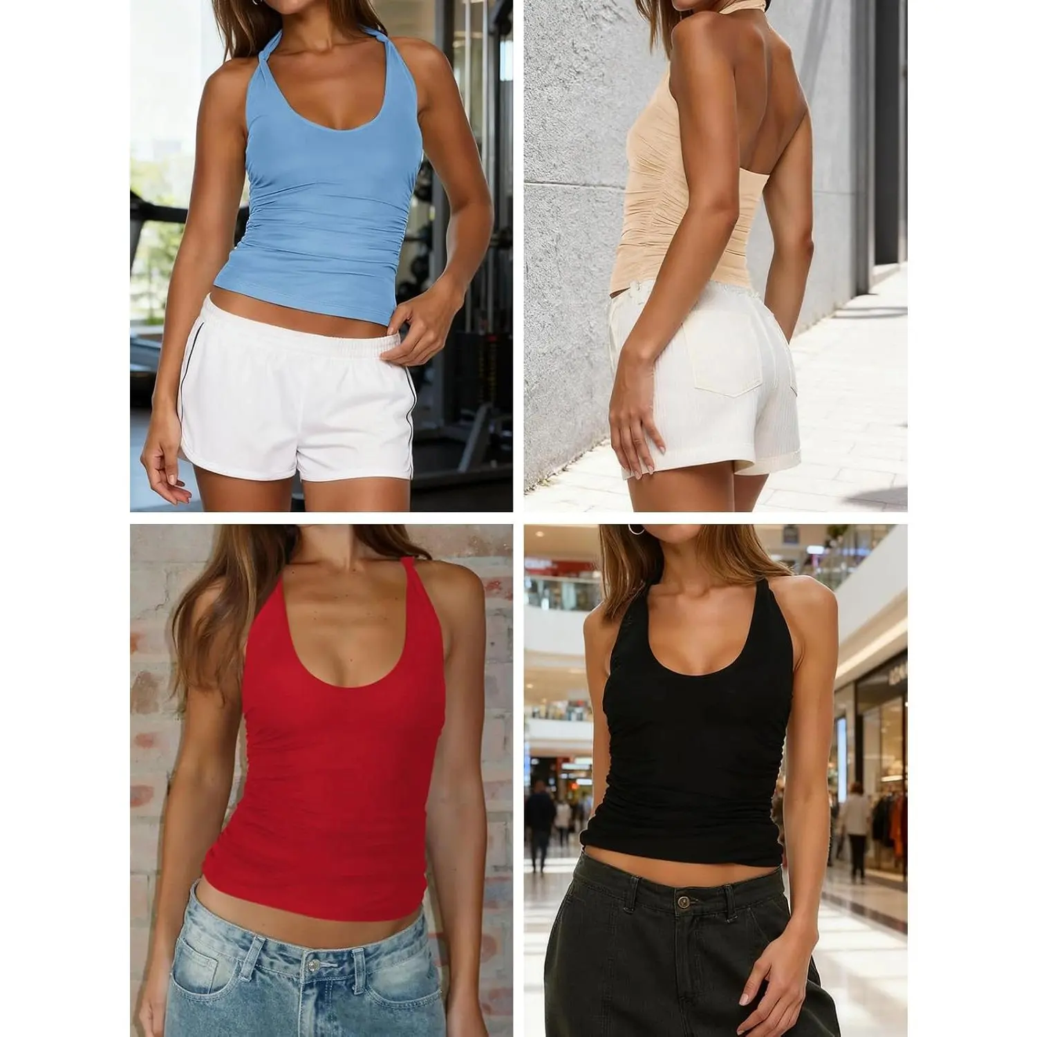 This Y2K halter top is the ultimate spring and summer essential 🌸🔥 Featuring a deep scoop neckline, ruched fitted design, and backless silhouette, this sexy going-out tank top pairs perfectly with high-waisted jeans or skirts for the perfect night out outfit. Affordable, trendy, and flattering — this is your new must-have women’s halter top! #HalterTop #Y2KFashion #plussizeootd  #SpringFashion2026 #WomensTrendyTops
