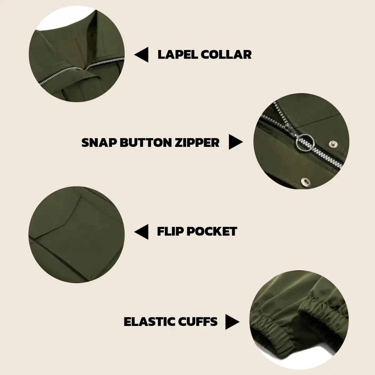 Women Casual Cropped Jackets Zip Up Lightweight Short Utility Coat