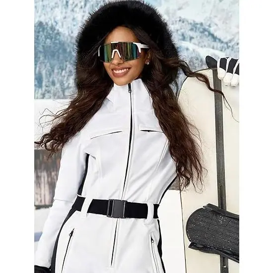 Yousify Womens Ski Suit One Piece Snowsuit Onesie Waterproof Windproof Ski Jacket Snowboard Sports Slim Jumpsuits Outerwear