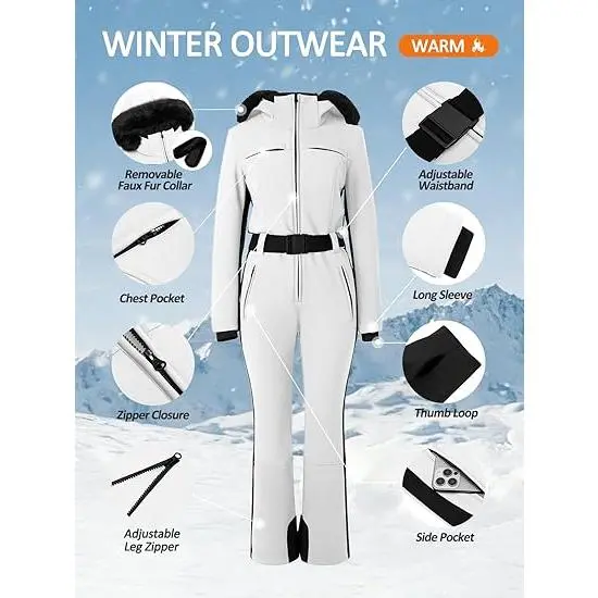 5. Yousify Womens Ski Suit One Piece Snowsuit Onesie Waterproof Windproof Ski Jacket Snowboard Sports Slim Jumpsuits Outerwear