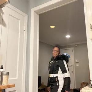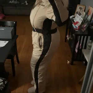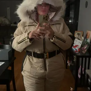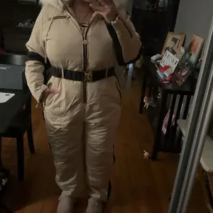 Love this one piece ski suit so warm true to size with a little extra room for layering. The length is perfect to go over your boots or ski boots and it has a side zipper at the bottom and half zip to get into it the hood and the belt are made of good quality and has kept me warm walking my dog.