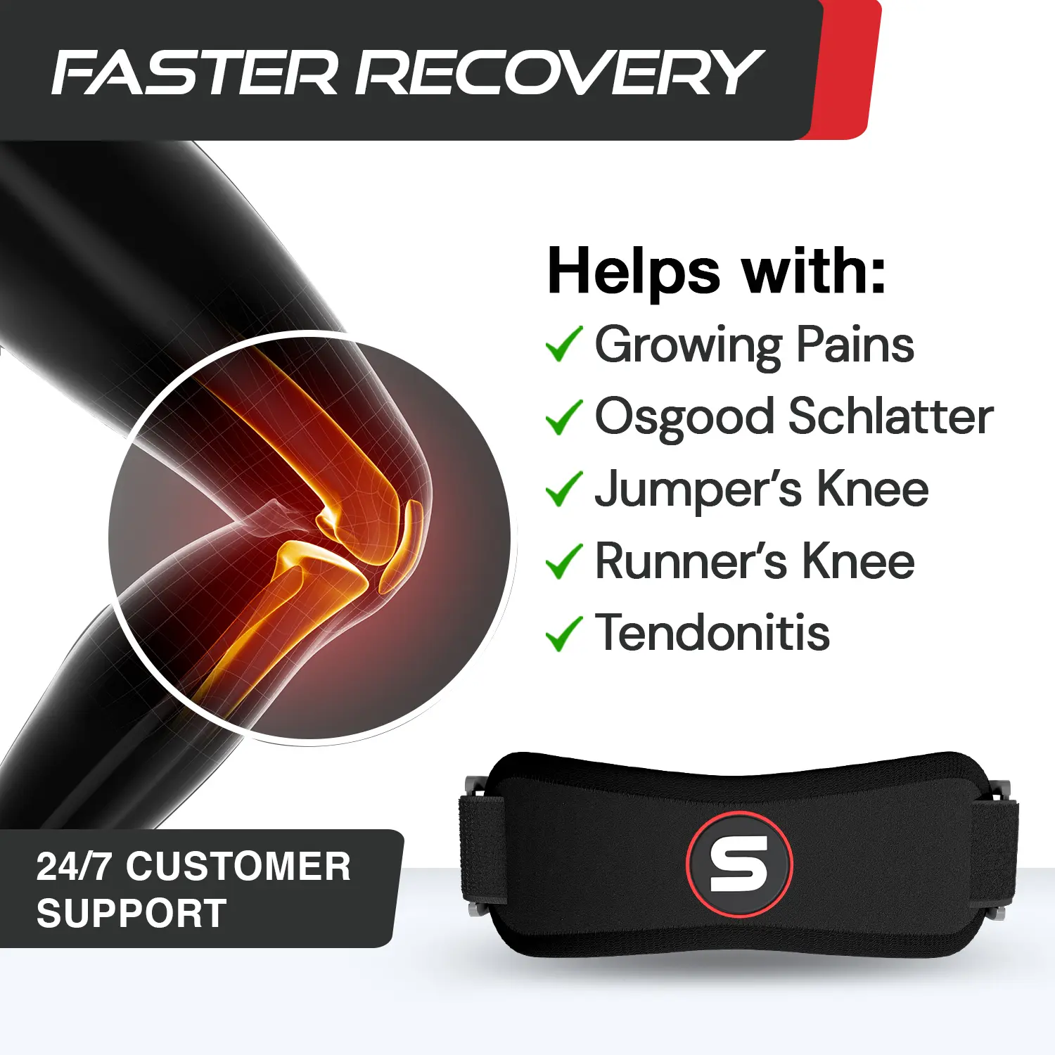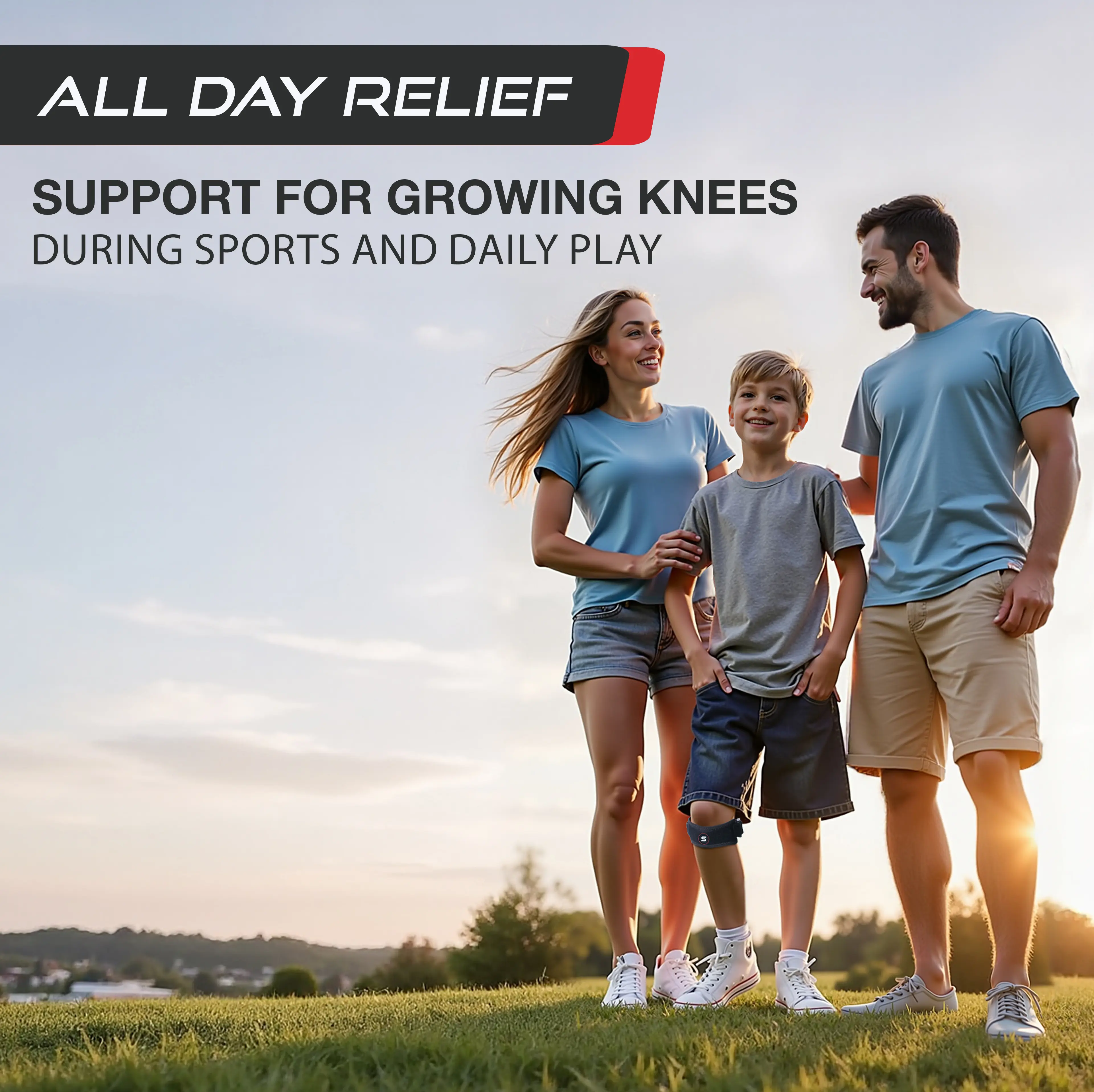 The Sleeve Stars Youth Patellar Strap provides gentle, targeted knee support for kids with growing pains, patellar tendon strain, or sports-related discomfort.
