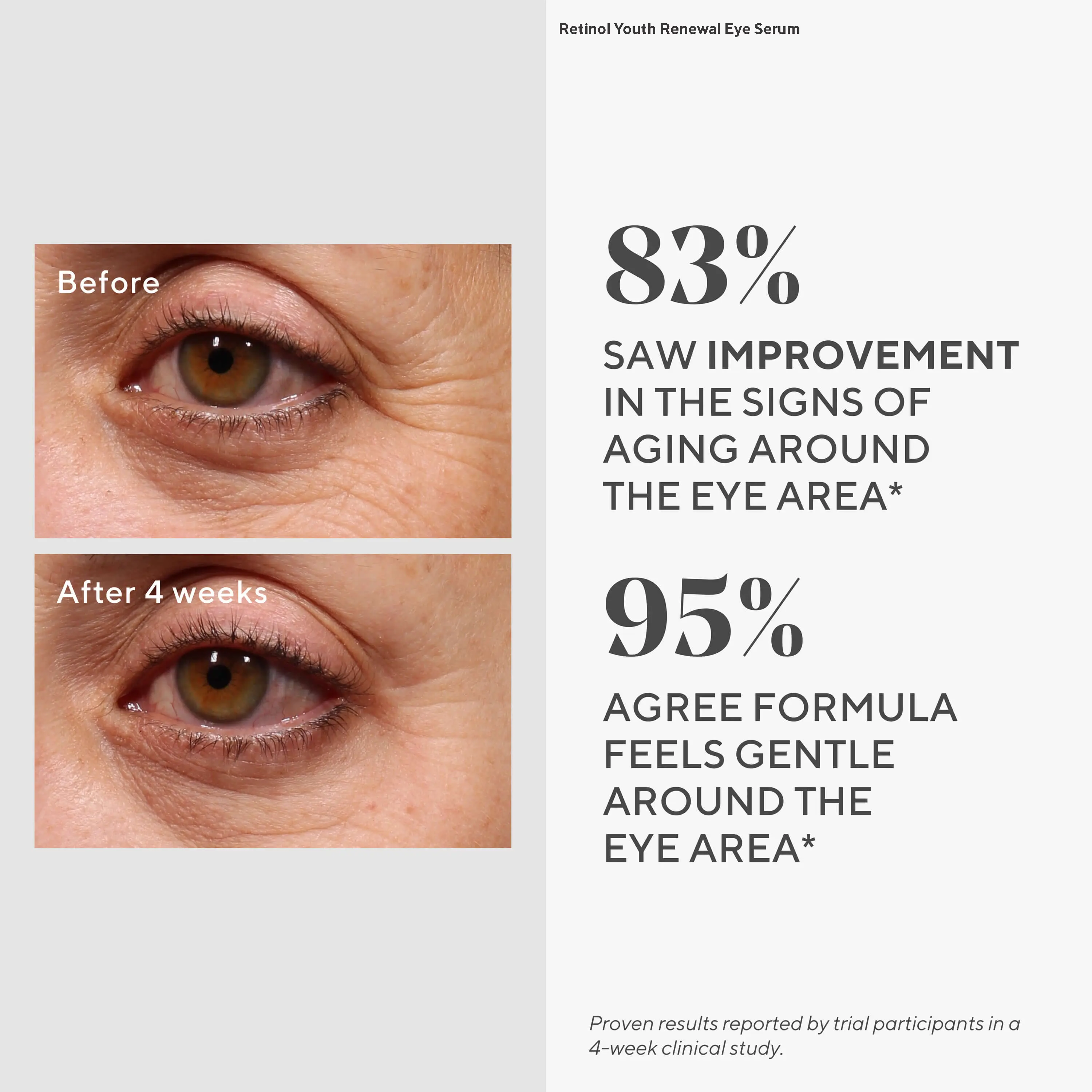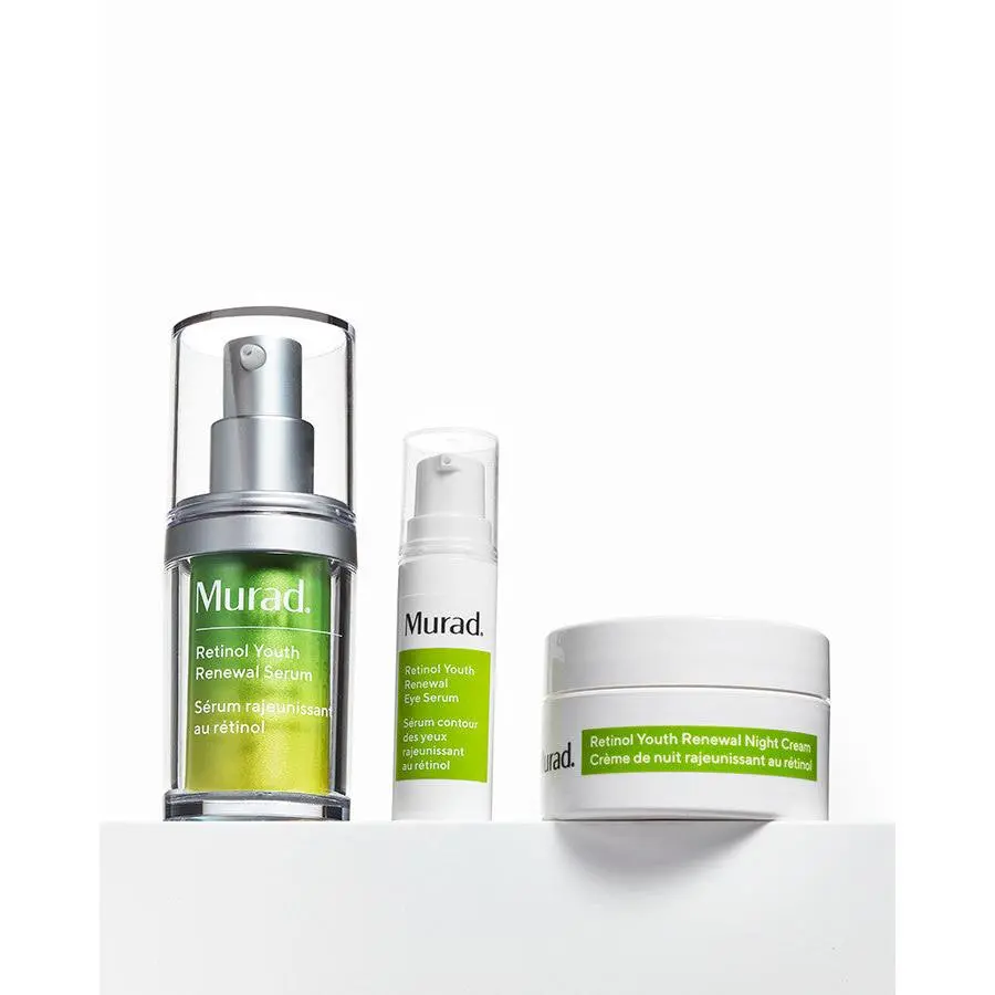 | Ingredients | Retinol Youth Renewal Eye Serum: Water/Aqua/Eau, Glycerin, Butylene Glycol, Dimethyl Isosorbide, Meadowfoam Delta-Lactone, Retinyl Propionate, Retinol, Swertia Chirata Leaf Extract, Urea, Yeast Amino Acids, Trehalose, Inositol, Taurine, Betaine, Fucus Vesiculosus Extract, Imperata Cylindrica Root Extract, Glycine Soja (Soybean) Extract, Macrocystis Pyrifera (Kelp) Extract, Hydrolyzed Vegetable Protein, Isopropyl Palmitate, Lecithin, PVP, Hexylene Glycol, Caprylyl Glycol, Xanthan Gum, Punica Granatum Seed Oil, Caprylic/Capric Triglyceride, PVM/MA Decadiene Crosspolymer, PEG-8, Carbomer, Sodium Bisulfite, Silica, Sodium Hydroxide, Chlorphenesin, Phenoxyethanol, Fragrance (Parfum), Red 4 (CI 14700), Yellow 5 (CI 19140),Retinol Youth Renewal Night Cream: Water/Aqua/Eau, Dimethicone, Glycerin, Butyrospermum Parkii (Shea) Butter, Stearyl Dimethicone, Caprylic/Capric Triglyceride, Arachidyl Alcohol, Octyldodecanol, Cetearyl Alcohol, Squalane, Borago Officinalis Seed Oil, Retinyl Propionate, Retinol, Swertia Chirata Leaf Extract, Urea, Yeast Amino Acids, Trehalose, Inositol, Taurine, Betaine, Glycine Soja (Soybean) Extract, Polymethylsilsesquioxane, Macrocystis Pyrifera (Kelp) Extract, Hydrolyzed Vegetable Protein, PVP, Ahnfeltiopsis Concinna Extract, Isopropyl Palmitate, Lecithin, Cetearyl Olivate, Octadecane, Disteardimonium Hectorite, Propylene Carbonate, Oleyl Alcohol, Dioscorea Villosa (Wild Yam) Root Extract, Glycine Soja (Soybean) Sterols, Hydrolyzed Yeast Extract, Cetyl Hydroxyethylcellulose, Polyglucuronic Acid, Sorbitan Olivate, Behenyl Alcohol, Arachidyl Glucoside, Tocopheryl Acetate, Zinc Gluconate, Sodium Polyacrylate, Dicaprylyl Carbonate, Polyglyceryl-3 Caprate, Xanthan Gum, Disodium EDTA, Sodium Hydroxide, Phenoxyethanol, Caprylyl Glycol, Chlorphenesin, Fragrance (Parfum), Alpha-Isomethyl Ionone, Citronellol, Yellow 5 (CI 19140), Red 4 (CI 14700),Retinol Youth Renewal Serum: Water/Aqua/Eau, Cyclopentasiloxane, Isopropyl Palmitate, C14-22 Alcohols, Polymethylsilsesquioxane, Dimethicone, Propanediol, Glyceryl Stearate, PEG-100 Stearate, Shea Butter Ethyl Esters, Retinol, Retinyl Propionate, Ceramide NP, Sodium Hyaluronate, Solanum Lycopersicum (Tomato) Fruit Extract, Swertia Chirata Extract, Squalane, Punica Granatum Extract, Tocopheryl Acetate, Glycine Soja (Soybean) Extract, Urea, Yeast Amino Acids, Trehalose, Inositol, Taurine, Betaine, Glycerin, Caprylic/Capric Triglyceride, Dimethyl Isosorbide, Silica, Ethylhexyl Palmitate, Silica Dimethyl Silylate, Butylene Glycol, Lecithin, Ammonium Acryloyldimethyltaurate/VP Copolymer, C12-20 Alkyl Glucoside, Cetyl Palmitate, Laureth-23, Polysorbate 20, Trideceth-6 Phosphate, Synthetic Fluorphlogopite, Phenoxyethanol, Ethylhexylglycerin, Chlorphenesin, Disodium EDTA, Sodium Hydroxide, Tris (Tetramethylhydroxypiperidinol) Citrate, Sodium Benzotriazolyl Butylphenol Sulfonate, Titanium Dioxide (CI 77891), Red 4 (CI 14700), Alpha-Isomethyl Ionone, Citronellol, Fragrance (Parfum) |