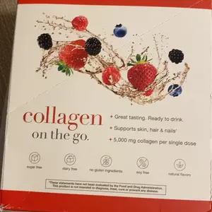 This is a very, very easy and delicious way of getting 5000 mg of collagen in your body once a day!! It taste delicious. It has a fruit taste to it. I Subscribe to it every month!