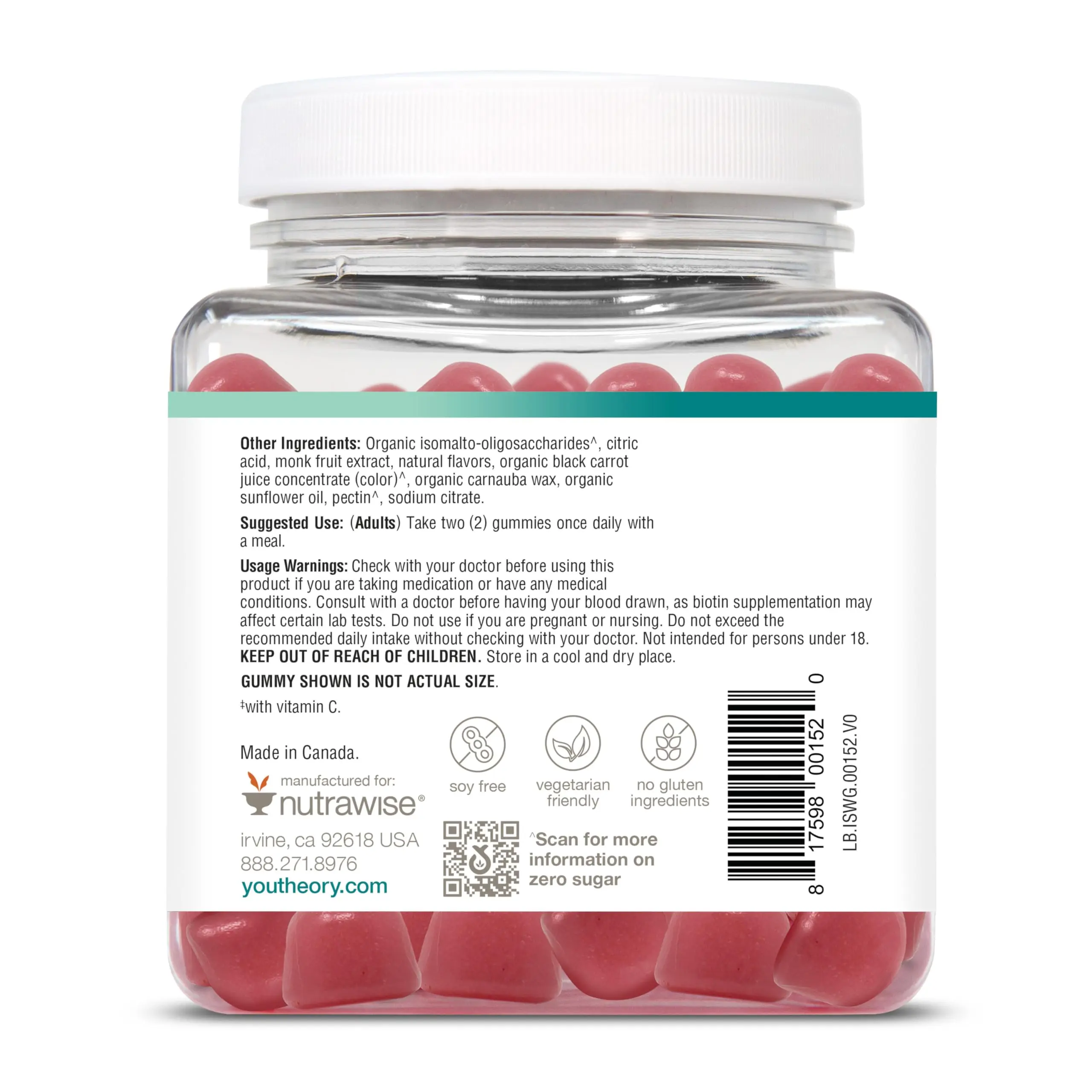 Youtheory Zero Sugar Irish Sea Moss Gummy 60ct A formulated blend harnesses nutrient rick Irish Sea Moss, beautifying biotin and antioxidant powerhouses vitamins C and D to support your natural beauty Revitalize your hair, skin and nails while supportin your immune system A delicious sugar-free berry gummy The Youtheory Promise- Everything we do is based on a dedication to build pure and effective supplements to support our mission to inspire wellness in all. Youtheory Collagen Liquid - 5,000 mg - For Hair Growth, Skin & Nails* - Supports Joint, Bone & Muscle Health* - With Amino Acids - Berry Flavor - 12 Single Serving Packets (12-Day Supply) Hydrolyzed Collagen Peptides: Provides 5,000 mg hydrolyzed collagen peptides per serving to support hair growth, nail health, and joint health* Enhanced Absorption: Contains clinically studied collagen peptides for easier absorption and visible results, supporting anti-aging* Ready-to-Drink Convenience: This berry-flavored collagen formula comes in single-serve packets—easy to take at home, work, or on the go for daily well-being* Third-Party Tested: Each batch is manufactured in-house in our GMP-certified facility for quality you can trust* The Youtheory Promise: Everything we do is based on a dedication to build pure and effective supplements to support our mission to inspire wellness in all