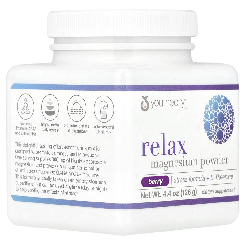 5. Youtheory Relax, Magnesium Powder, Berry, 4.4 oz (126 g)