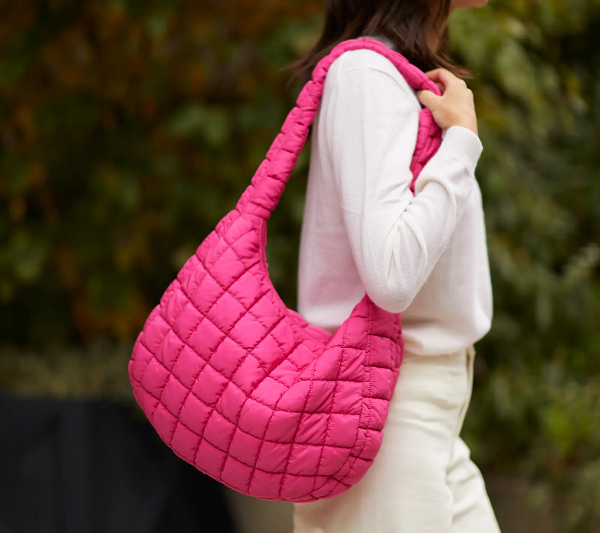 This bag is so cute and comfortable to wear! Watch until the end to see the hot pink color!#crossbody #crossbodybag #purse #pursetok #bag #pufferbag