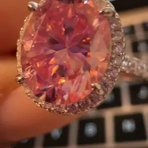 This is one of my new favorite rings. It’s absolutely perfect. There’s a halo around the stone and the stones glisten halfway down the sides. Sekura pink is stunning!
