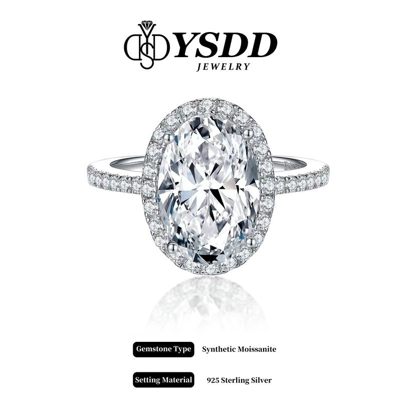 5. 【#527 Holiday&Xmas-31】3CT Oval Halo Pave Engagement Ring vvs Synthetic Moissanite Rings in 925 Sterling Silver