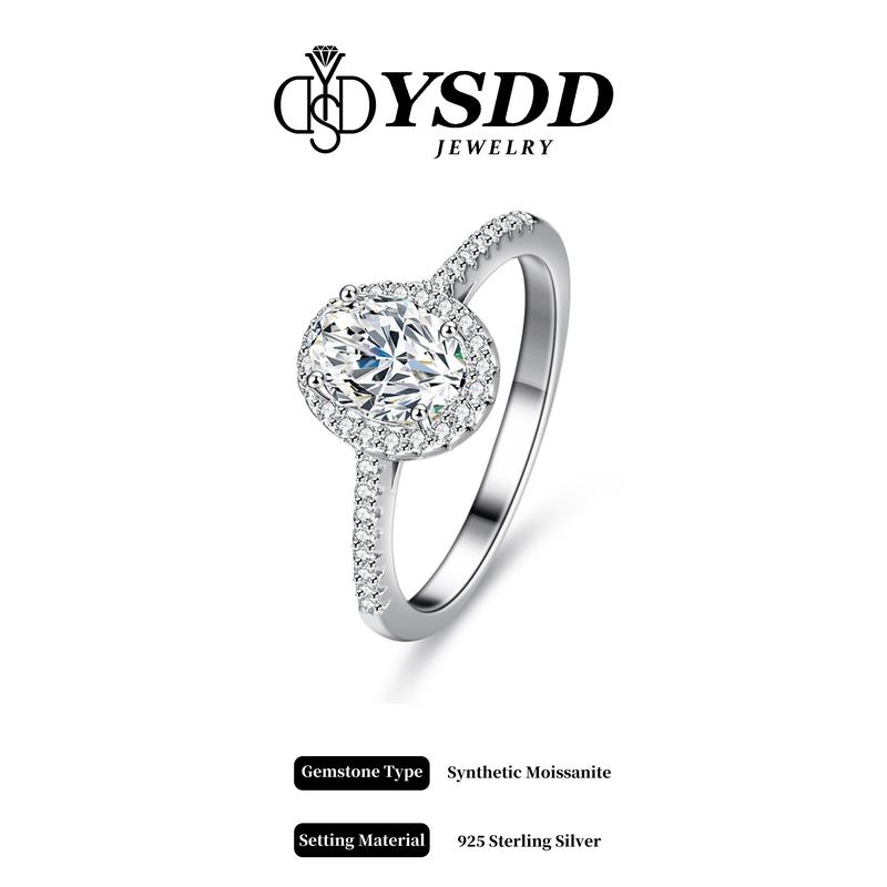【#527 Holiday&Xmas-31】3CT Oval Halo Pave Engagement Ring vvs Synthetic Moissanite Rings in 925 Sterling Silver