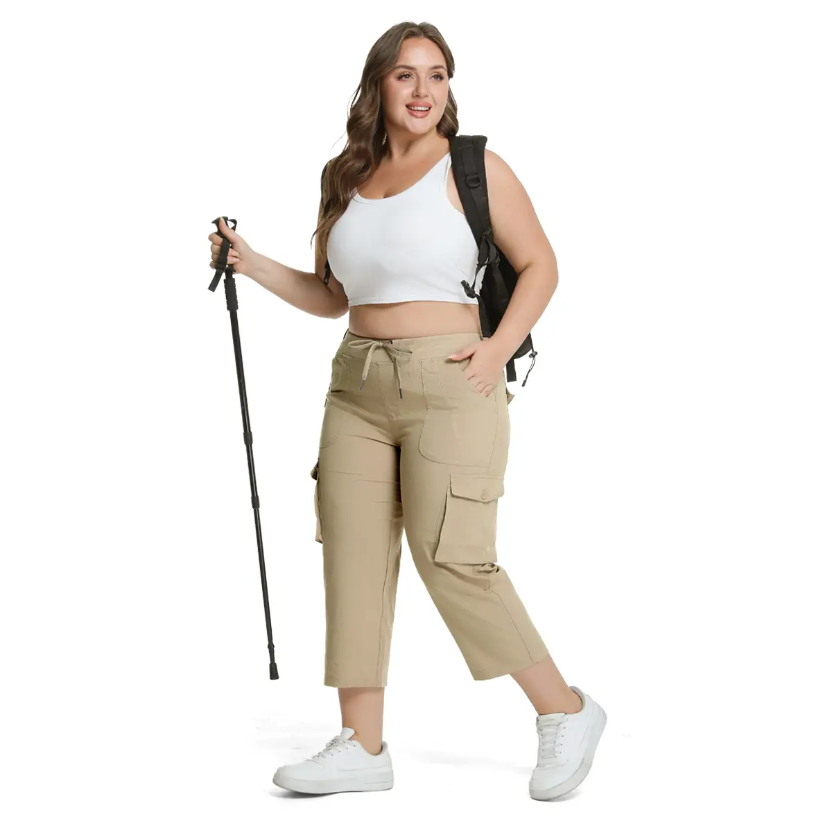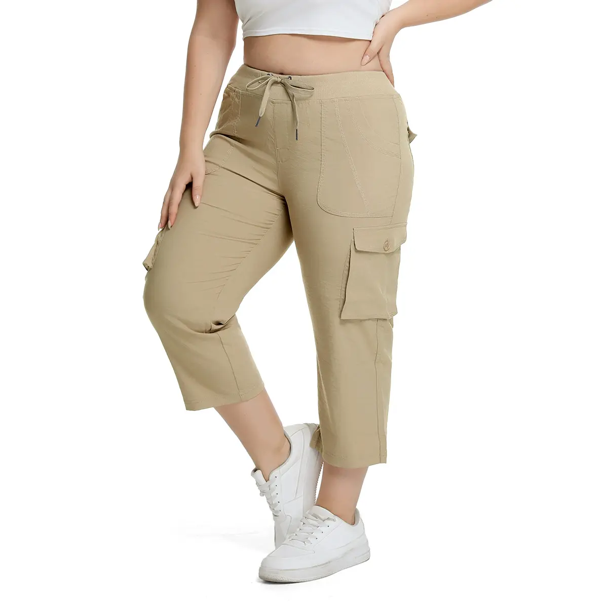 YSENTO Women's Cargo Capris UP TO XXXXL Outdoor Lightweight Cargo Casual Pants Casual Trip Loose Shorts Summer Style Moms over 30 Comfy wear ootd Bottoms Basic Khaki #SpringFresh