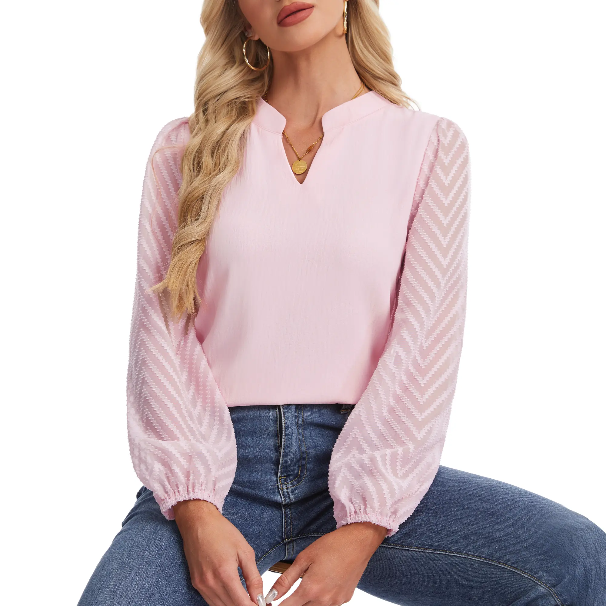 1.[Chiffon & Lace Fusion]Made of 95% polyester + 5% spandex chiffon, with V-patterned lace sleeves. Lightweight and breathable, soft for spring/summer, stays cool for long wear. Lace patchwork adds unique texture, complementing the solid design perfectly.