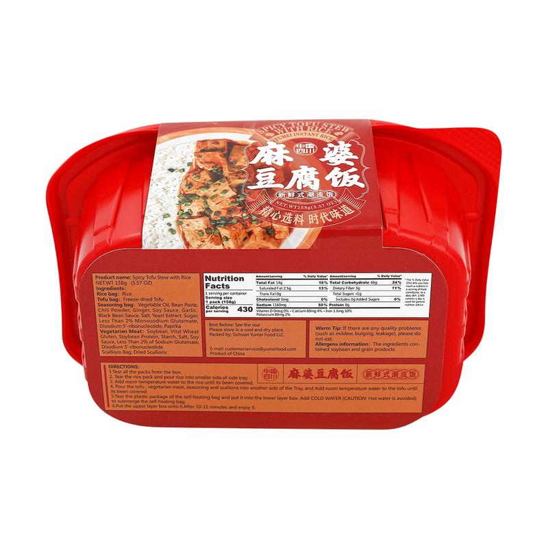 YUMEI Self-Heating Ma Po Tofu Rice Bowl - Instant Chinese Meal, 158g