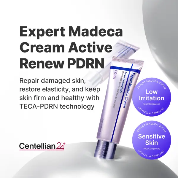 Expert Madeca Cream Active Renew PDRN (50ml) Designed to soothe and firm stressed skin, this cream features advanced TECA-5D PDRN technology, utilizing five molecular sizes of PDRN for enhanced surface absorption. TWith a soft, creamy texture, it incorporates 10D-Hyaluron and Beta-Sitosterol to calm irritation and provide an immediate cooling effect. This expert-level treatment helps the skin appear renewed, vibrant, and visibly firmer.