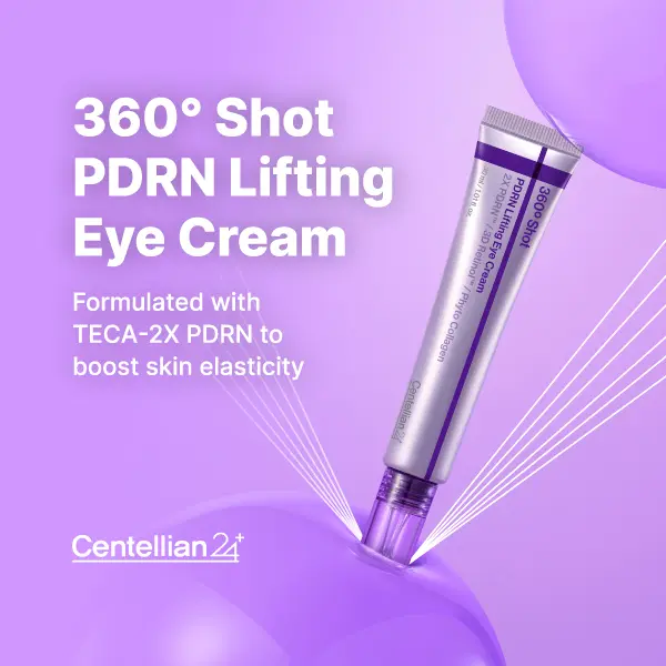 360º Shot PDRN Lifting Eye Cream This precision treatment is designed to target the appearance of tired, sagging skin around the delicate eye area. Powered by a TECA-2X PDRN Complex, it helps the skin look visibly lifted and more resilient. Featuring 3D Retinol and Plant-Based Collagen, this formula helps smooth the look of fine lines and crow’s feet while promoting a firmer, bouncier appearance. Its specialized thread-like texture is engineered to set and hold active ingredients in place.