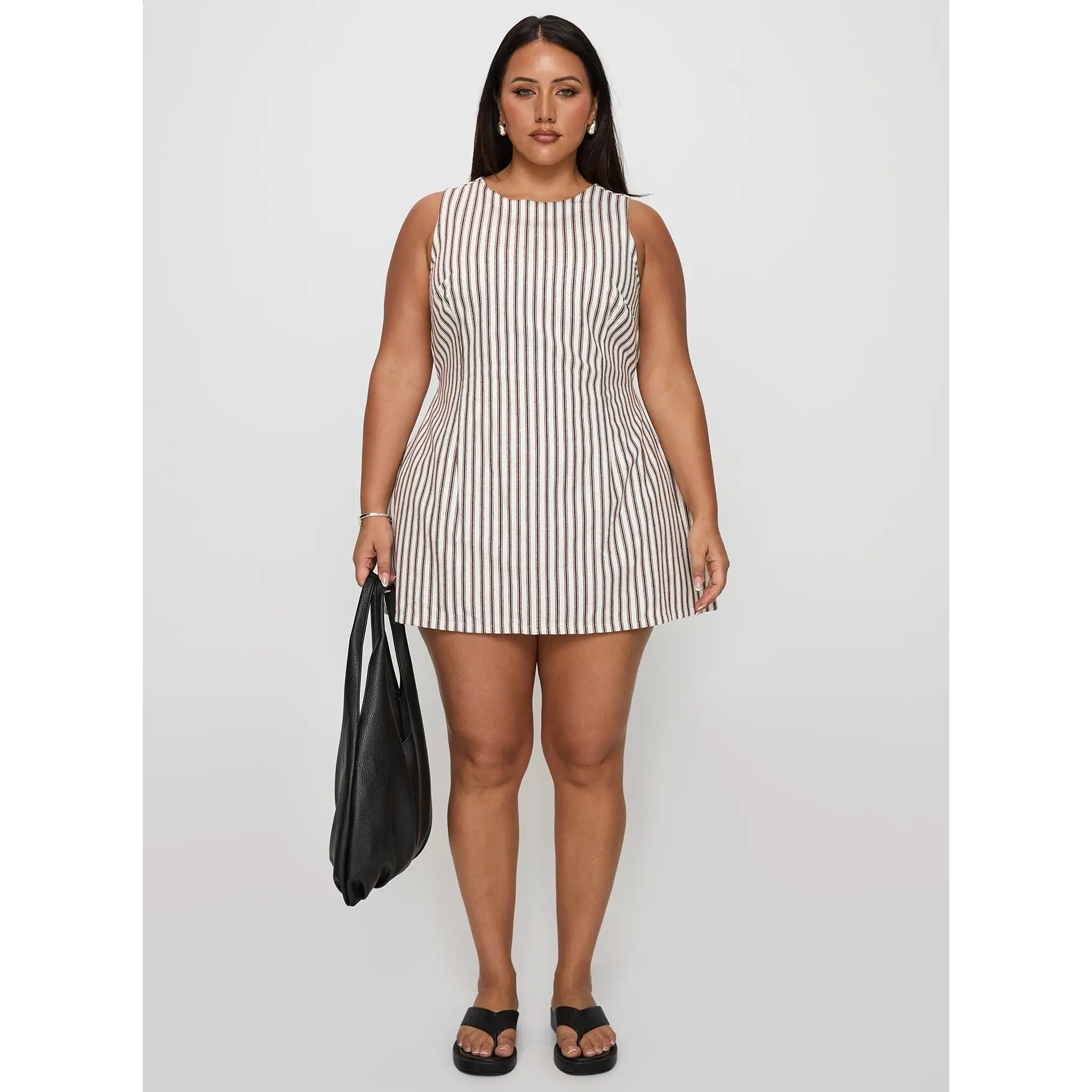 Alfalfa Shift Mini Dress Grey Stripe Curve