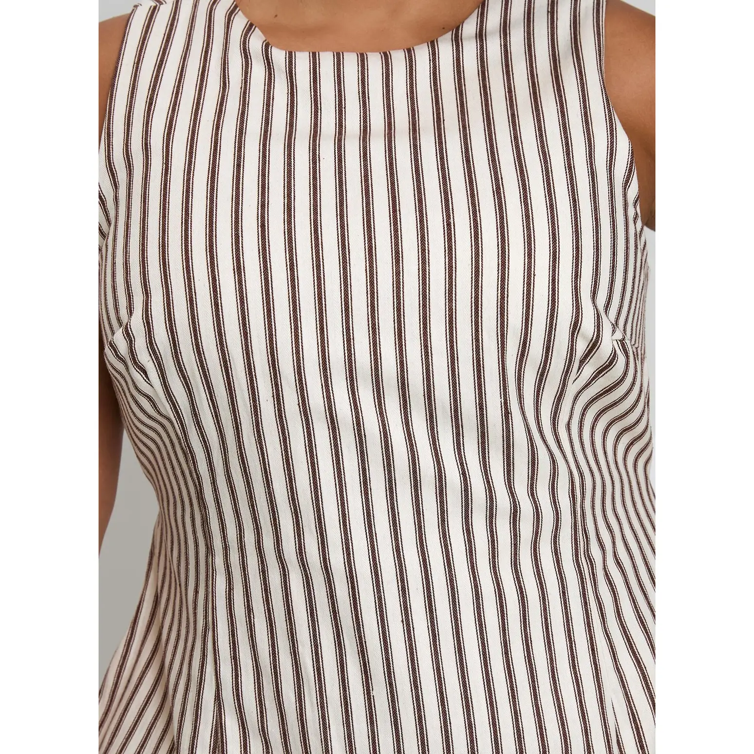 Yumiko Romper Brown Pinstripe