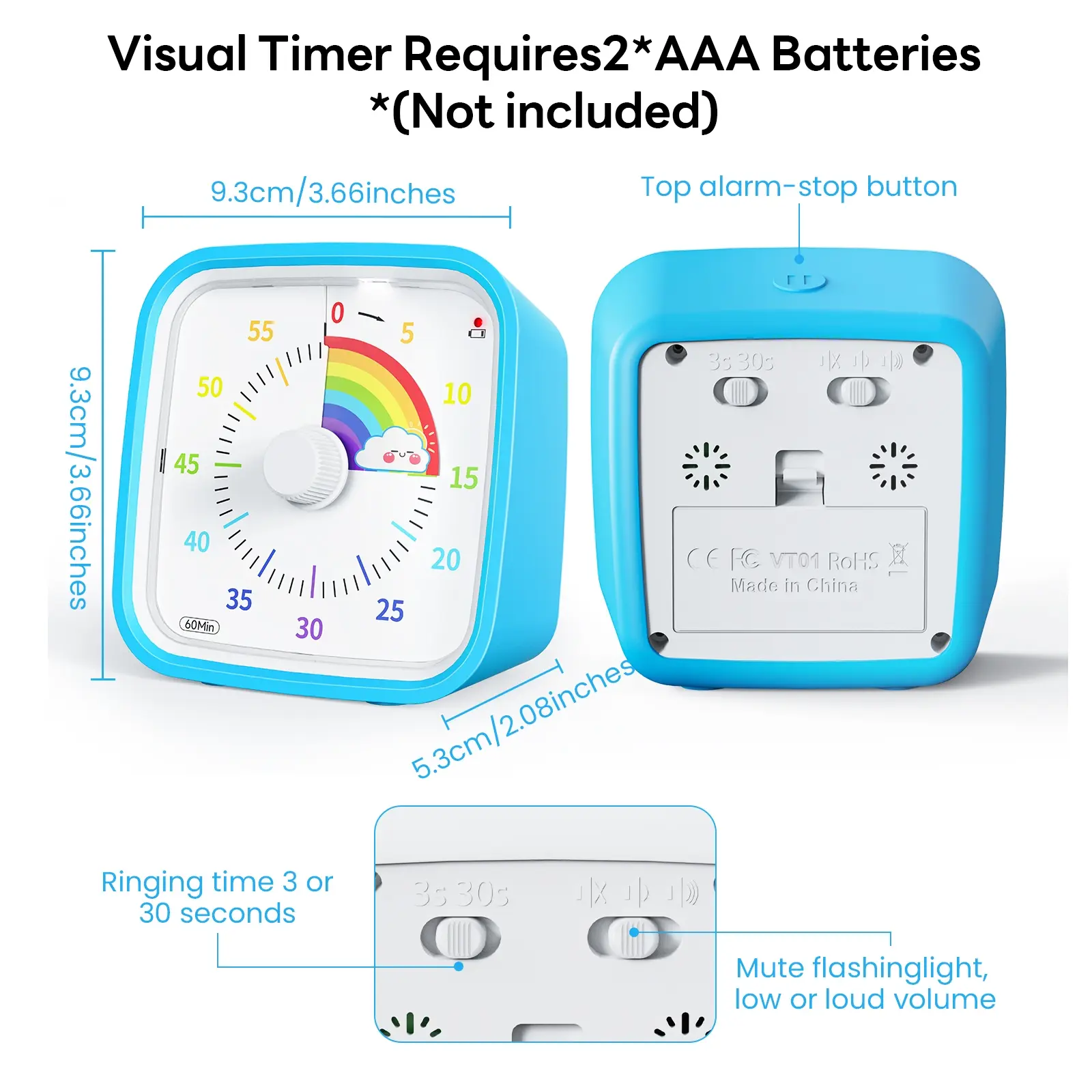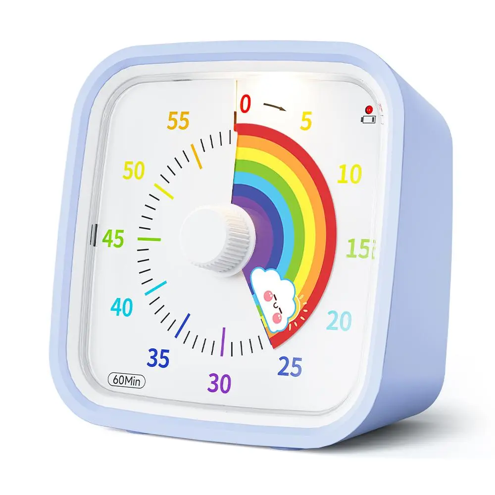 ·Easy to Use: By turning the center knob clockwise, the rainbow disk can be adjusted to the desired time duration, then the kids timer starts to count down; The protective cover is made of healthy materials, it can effectively protect the timer