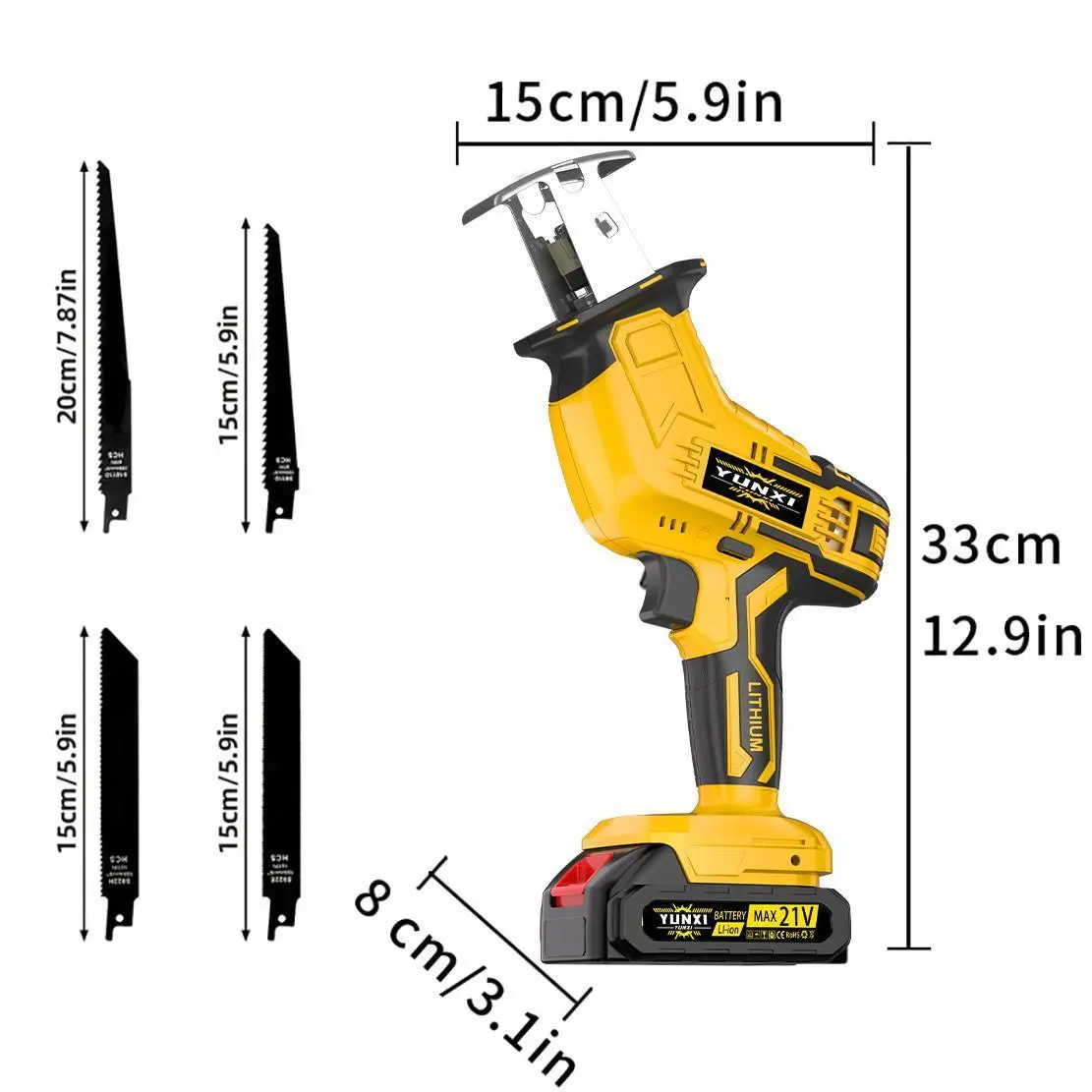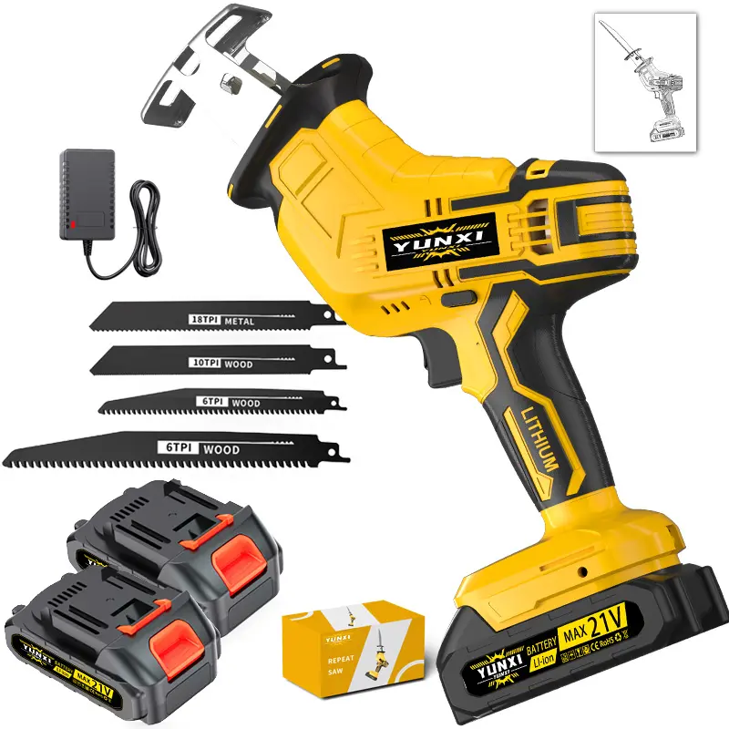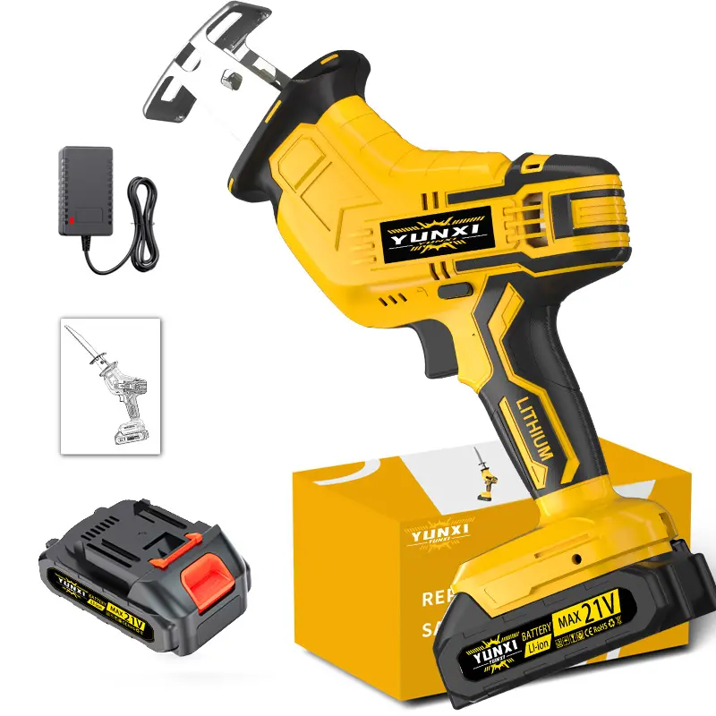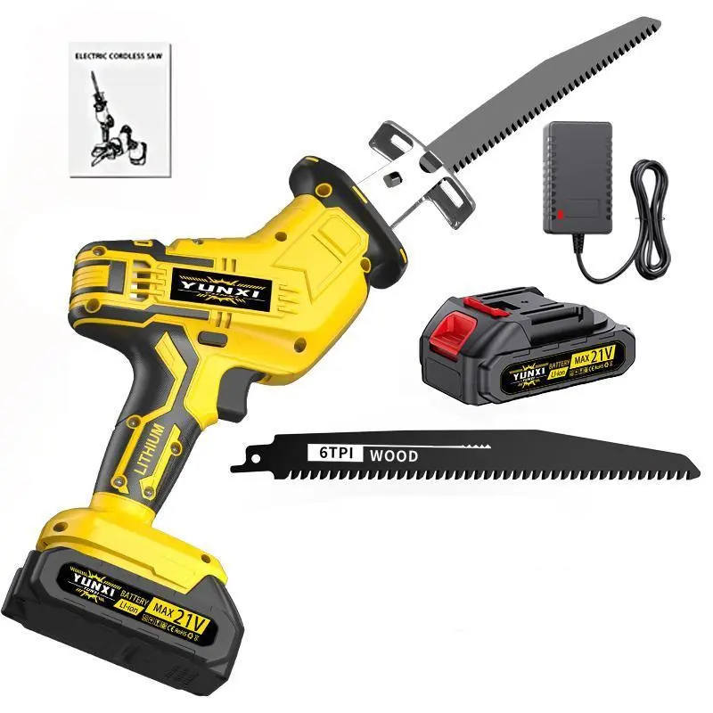 YUNXI reciprocating saw Lithium-ion battery powered cordless saw, cordless saw blade, cordless reciprocating saw, suitable for home and outdoor use, for cutting trees, PVC, thin wood panels and soft metal.