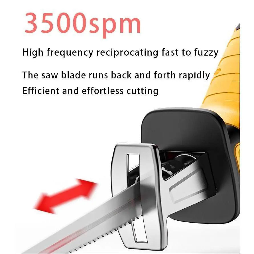 The Brushless Reciprocating Saw excels in wood, metal, and PVC cutting. It's a cordless electric jigsaw, perfect for woodworking and gardening. This saw's design allows efficient cutting across various materials, enhancing its utility in multiple applications. Ideal for professionals, it ensures durability and performance.