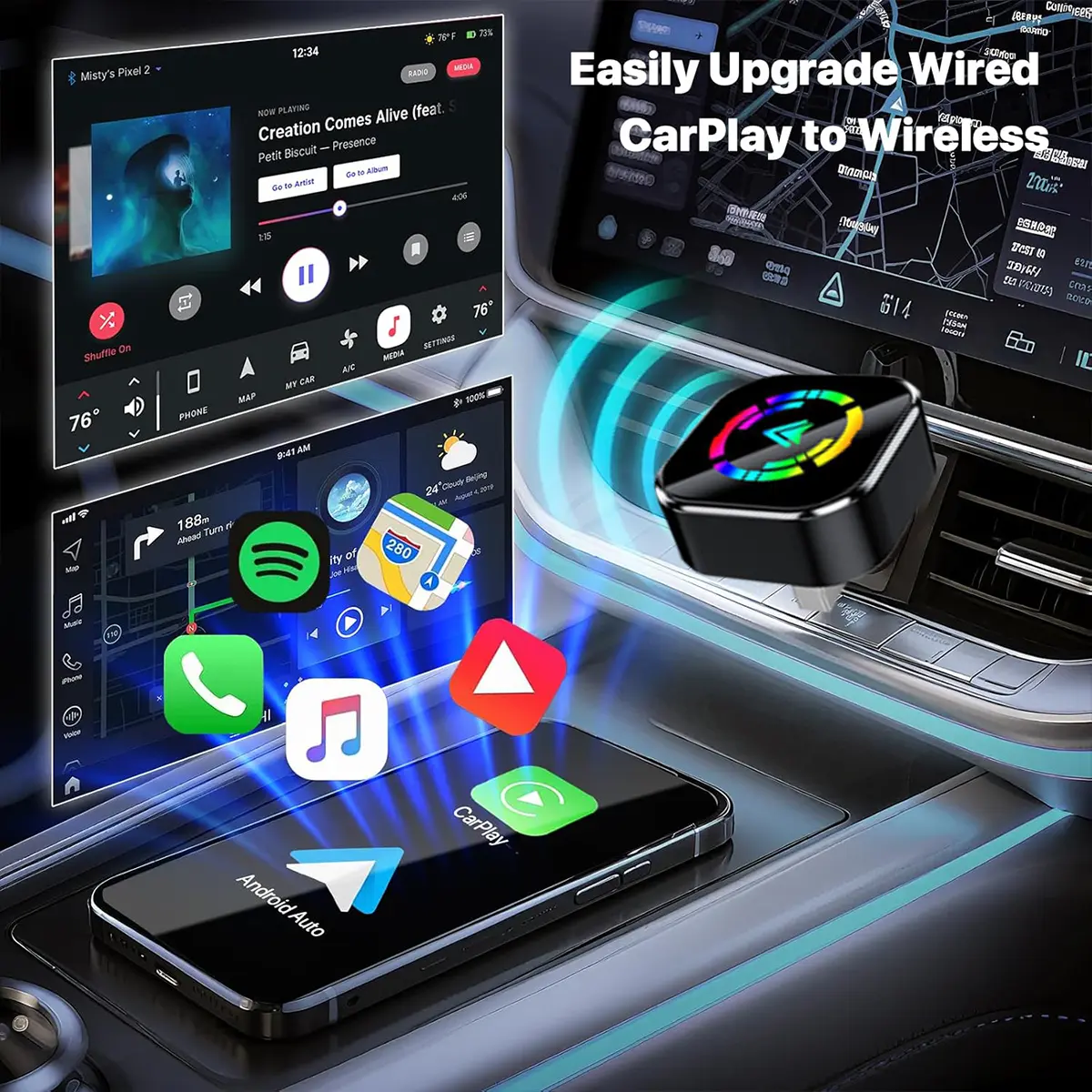 ·The main function of this product is to convert wired CarPlay or Android Auto into wireless.