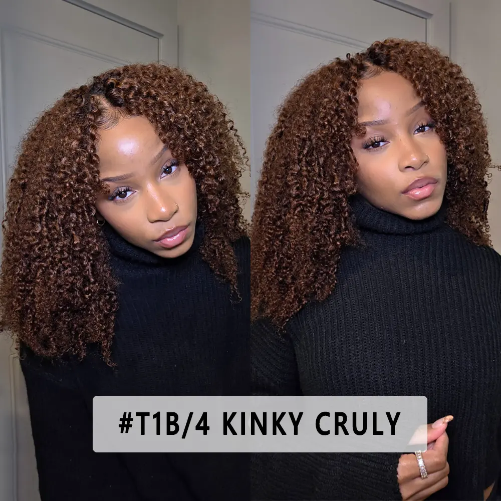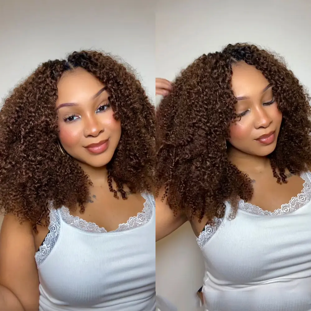 YWIGS Color Crochet Human Hair Extensions T1b/4 Blend Color Crochet Hair Pre-Separated Afro Kinky Curly Crochet Hair 4-5 Bundles Recommended for a Full Head TikTokShopJumpstartSale
