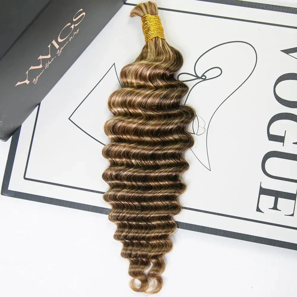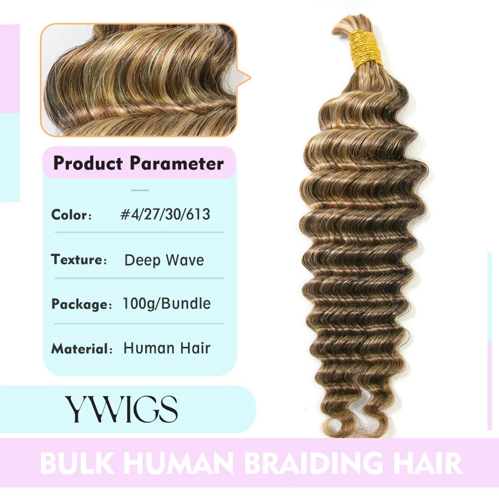 YWIGS Blend Deep Wave Bulk Human Braiding Hair for Boho Braids Human Hair for Braids #4/27/30/613 Mix Blend 100grams/bundle