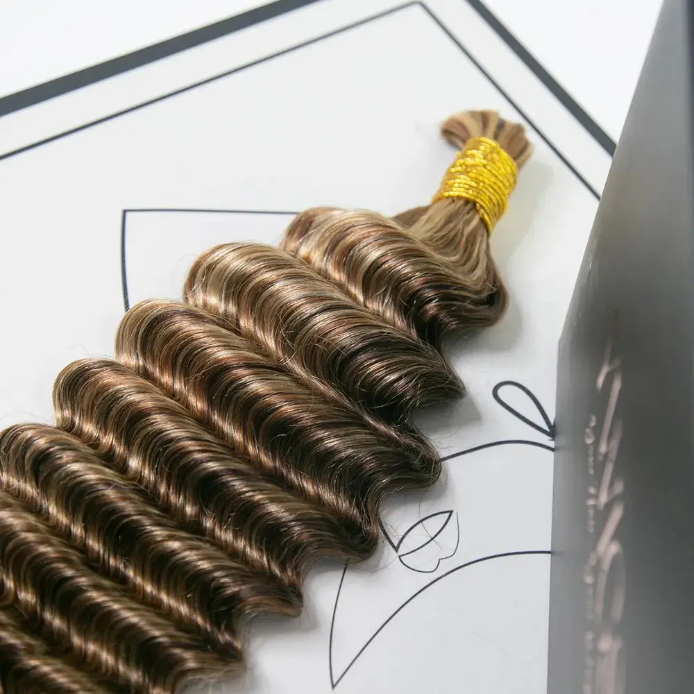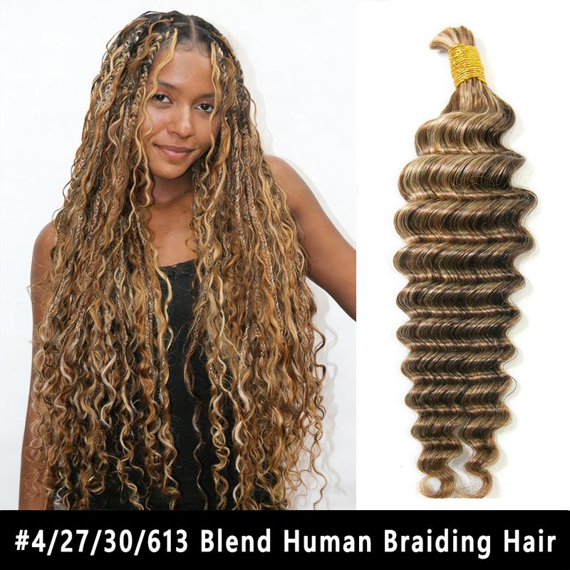 · #4/27/30/613 Mix Color Blend Deep Wave Bulk Human Braiding Hair: This versatile hair offers a mix of colors, perfect for braiding and boho styles. Choose from #27, #30, or #613 blends for a unique look.