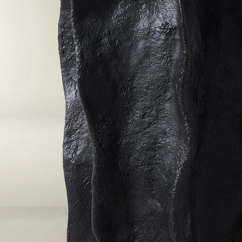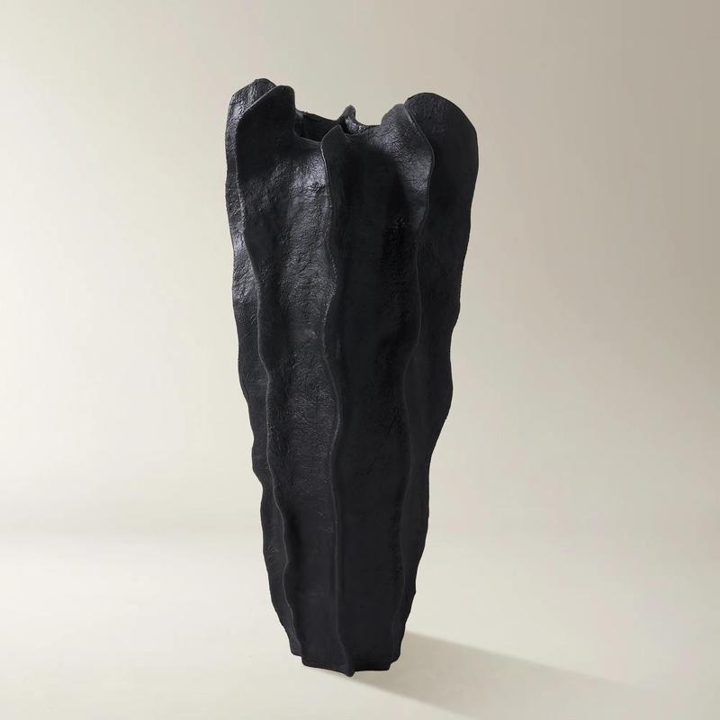 The Playa Floor Vase in matte black offers a striking combination of texture and simplicity. Its organic design and imposing height create a sophisticated focal point. Whether styled as a pair or solo, it adds depth and dimension to any room.