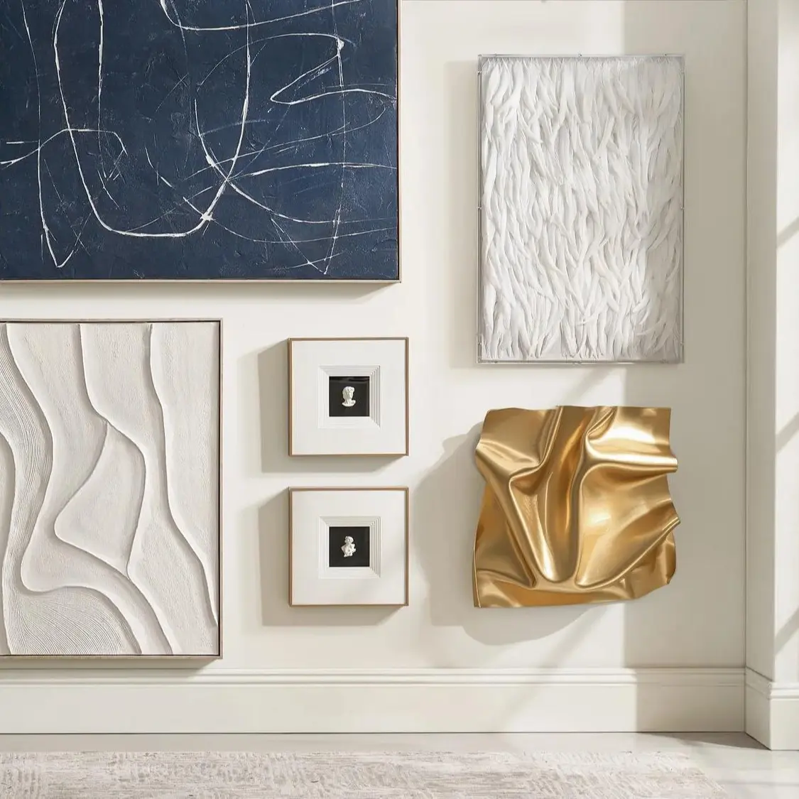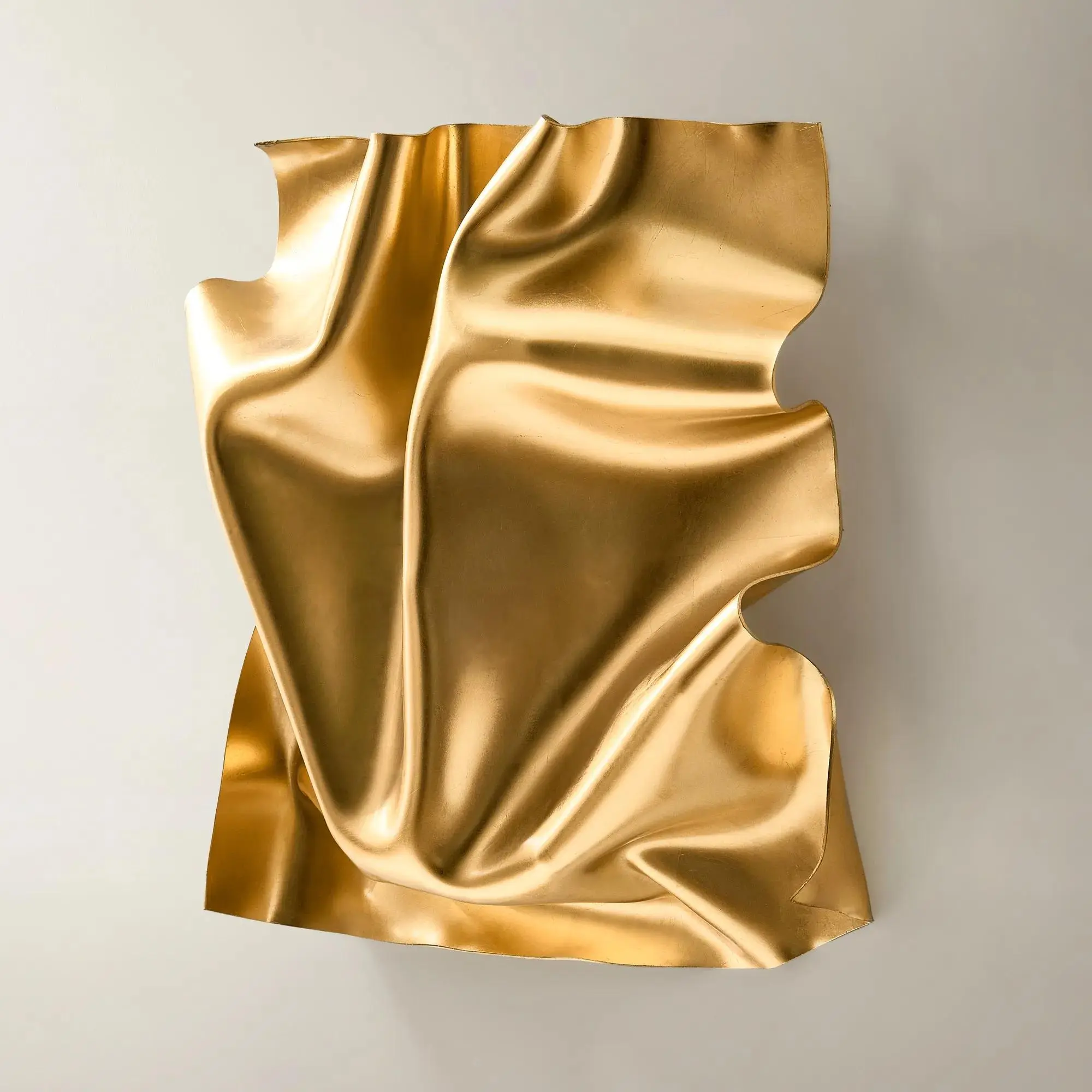From a distance, the piece feels like a shimmering fragment of liquid gold; up close, every crease and fold reveals nuanced texture and depth. Hung solo, it delivers instantly impactful gold decor for walls, especially over consoles, in entryways, or layered into a salon-style arrangement. Paired with minimal framing and luxe materials, it becomes modern wall art decor that adds warmth, radiance, and sculptural edge without competing with your furniture or textiles.