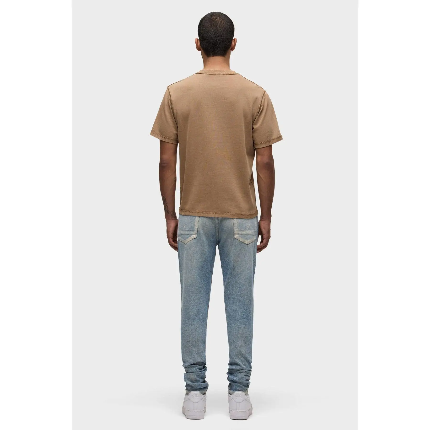 DescriptionFor a snug fit, look no further than our Zack Skinny Jean. Mid-rise, slim through the hip and thigh with a narrow leg and 34” inseam. This pair is made of comfort stretch denim in Vintage Mist, a medium indigo wash with all-over, uneven light brown stains and light brown pigment on the seams. Product DetailsFront Rise: 10.75", Leg Opening: 12", Inseam: 34"Model Height 6’1"Model wearing size M/32Measurements based on size M/32Fabric & CareContent: 99% Cotton, 1% ElastaneMachine wash cold gentle cycleDo not bleachTumble dry lowMedium iron if needed