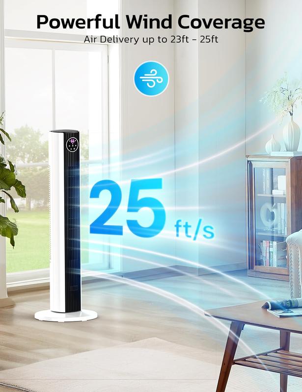 ·【12H Timer & Sleep Mode】Compared to the 7-hour timer on the market, our tower fan has a built-in 12-hour precision timer, with a thoughtful sleep mode that automatically adjusts the wind power according to individual work and rest, making nighttime use both energy-efficient and reassuring, and accompanying you to have a good night's sleep.