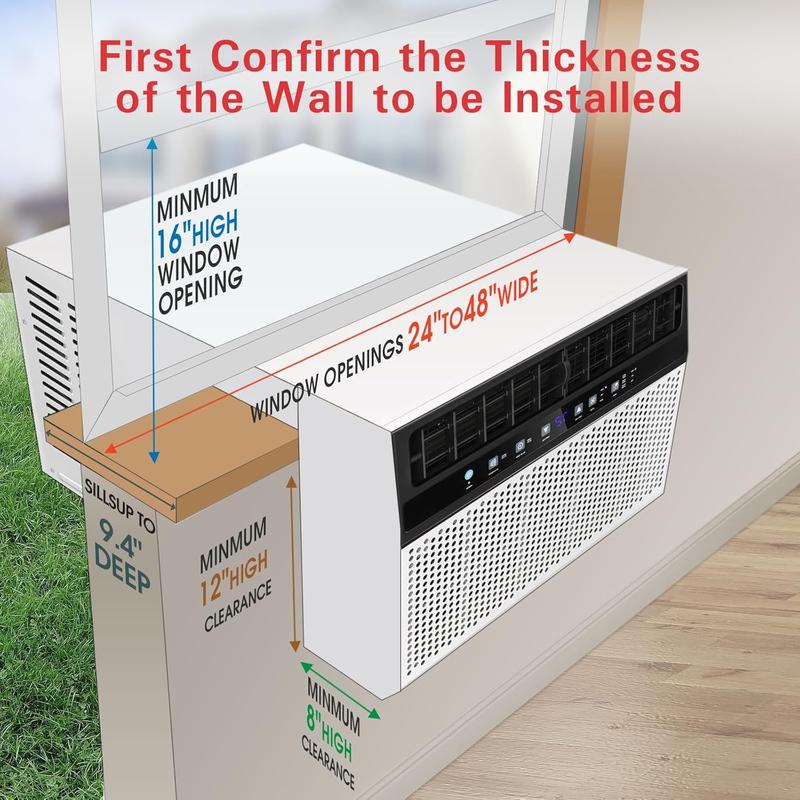 【EASY INSTALLATION】:Installation of our window air conditioners is a breeze thanks to the include all accessories needed, which is suitable for single-hung or double-hung windows between 24"-48" and a maximum window sill fit of 11".