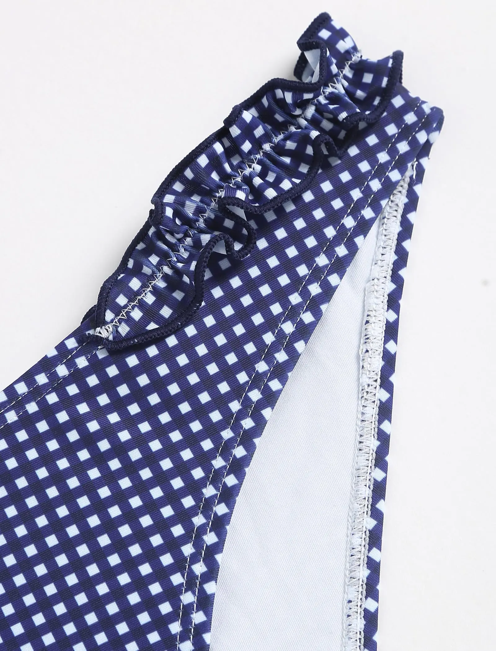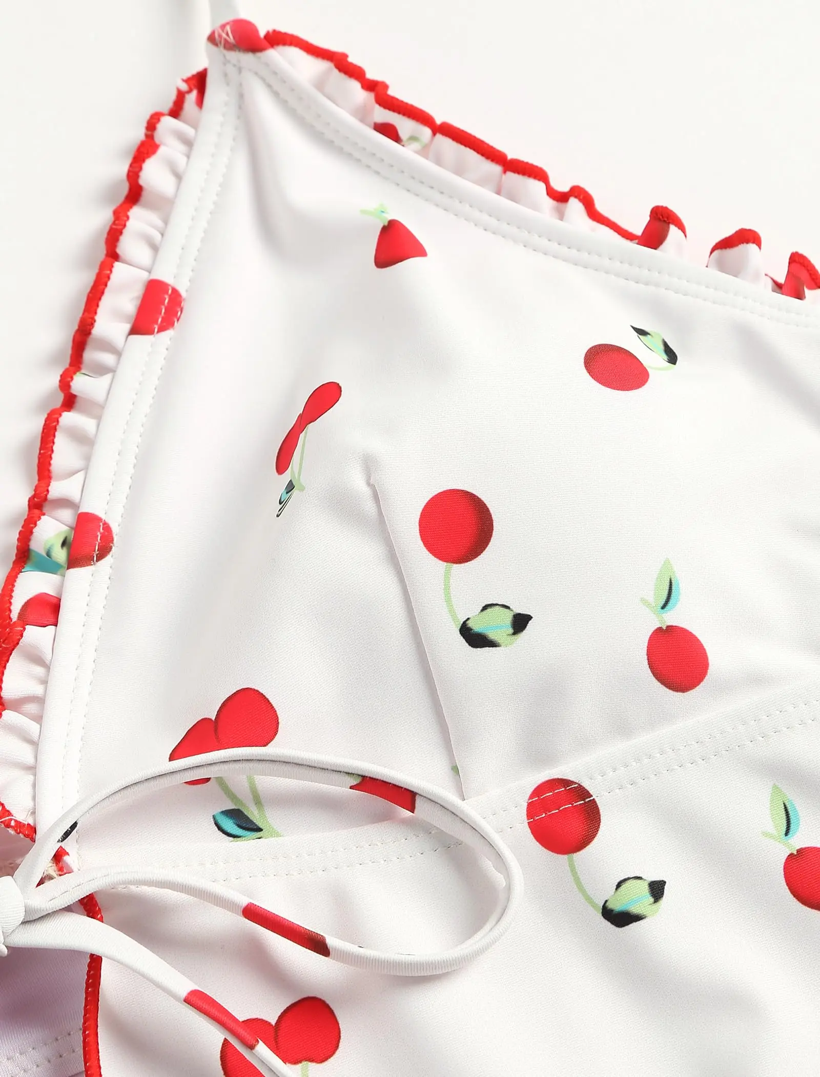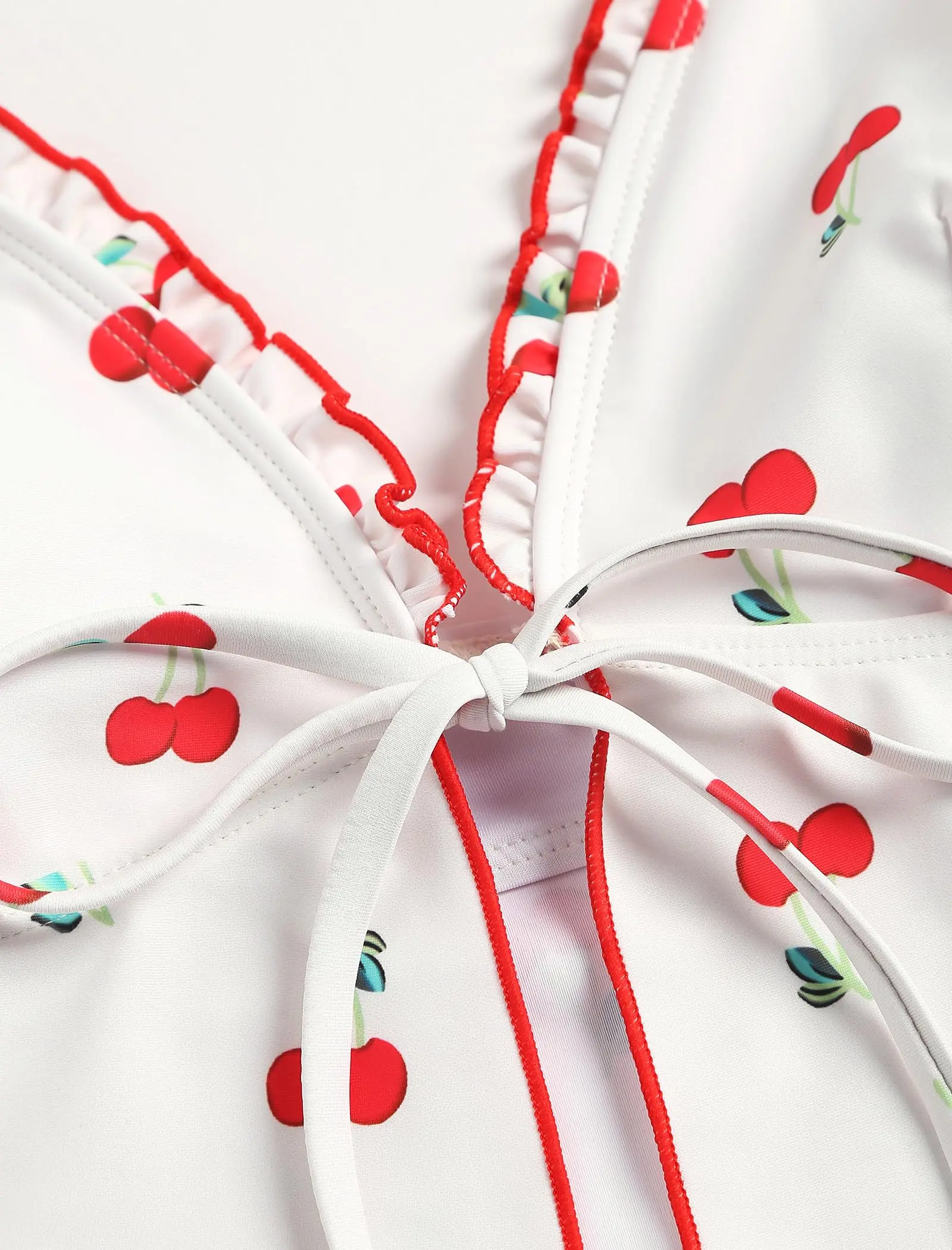 Smocked Ruffles Tie Front Bowknot Textured High Cut Tanga Tankini Set