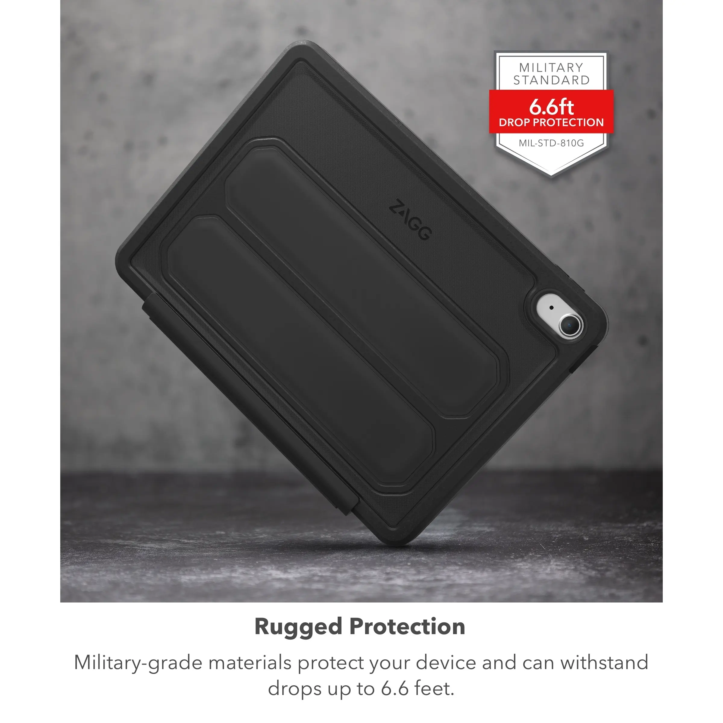 Ever drop your iPad and cringe? The ZAGG Rugged Book Case for iPad 10.9" (Gen 10) is here to save the day with military-grade drop protection up to 6.6 feet. Whether you're working late or binge-watching your favorite shows, the detachable backlit keyboard with adjustable viewing angles makes typing comfy and efficient. Plus, the multi-device Bluetooth pairing means you can switch from iPad to phone or laptop without missing a beat. The keyboard also cleverly holds your Apple Pencil, so it’s always within reach. Inside the box, you get the rugged case, a detachable wireless keyboard, and a USB cable for charging. Built tough and designed for everyday use in education, business, or multimedia, this case blends protection with productivity. Ready to upgrade your iPad experience? Grab the ZAGG Rugged Book Case and type away in style and safety!