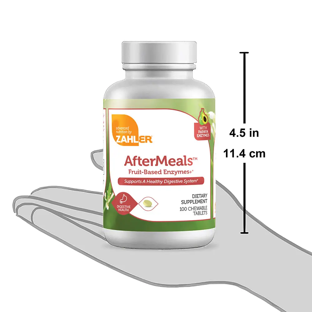 AfterMeals supports efficient food breakdown throughout digestion. Its potent dose of calcium and fruit enzymes helps in nutrient absorption and reduces digestive problems. Trust Zahler for your digestive health needs.