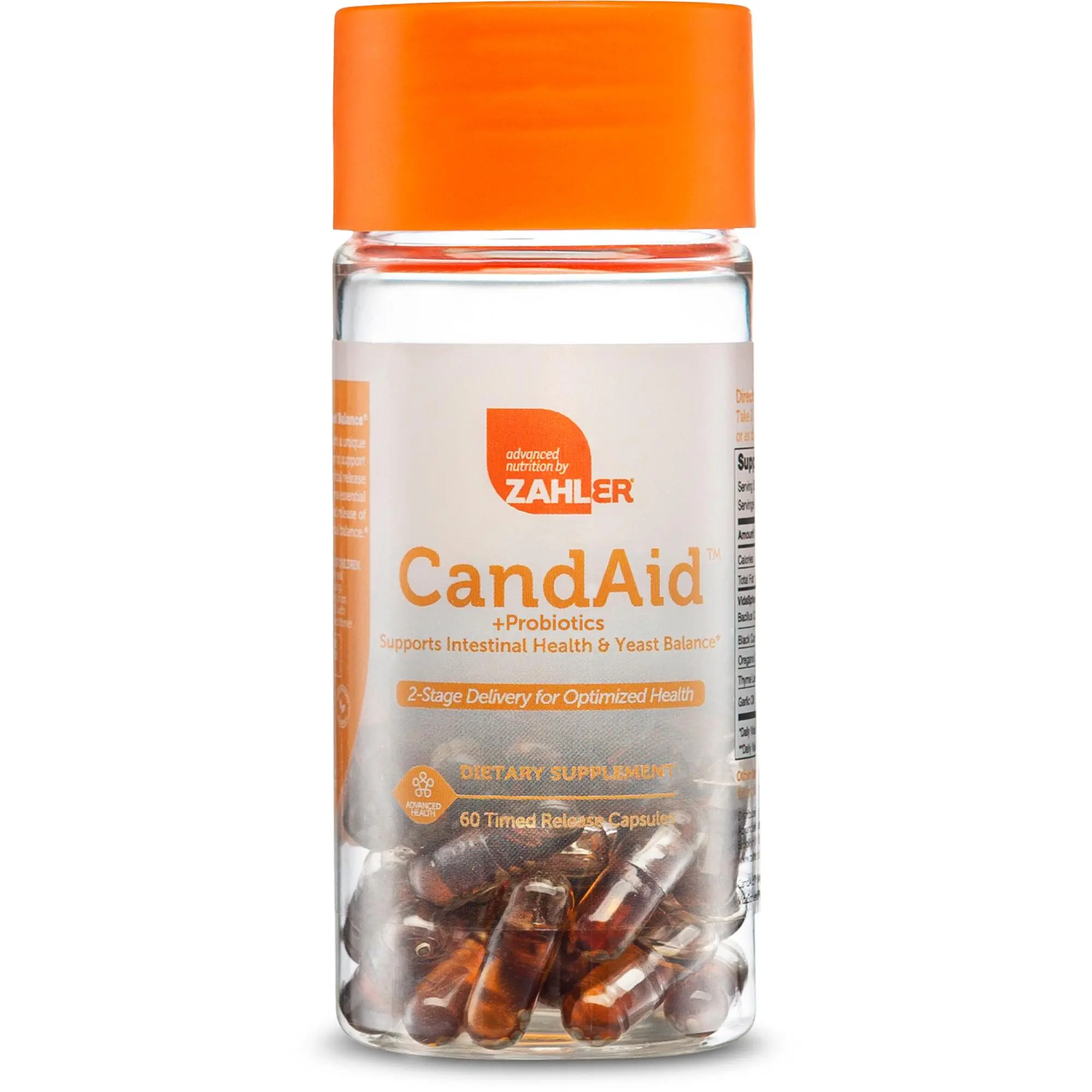Zahler CandAid nutritional dietary supplements. 2 stage delivery to support intestinal health and yeast balance. Includes black seed oil, Oregano, Garlic, and thyme essential oils which are then complimented by probiotics. 60 capsules. The work great for me. They have improved my gut health. Will continue to buy works great with great ingredients in it.