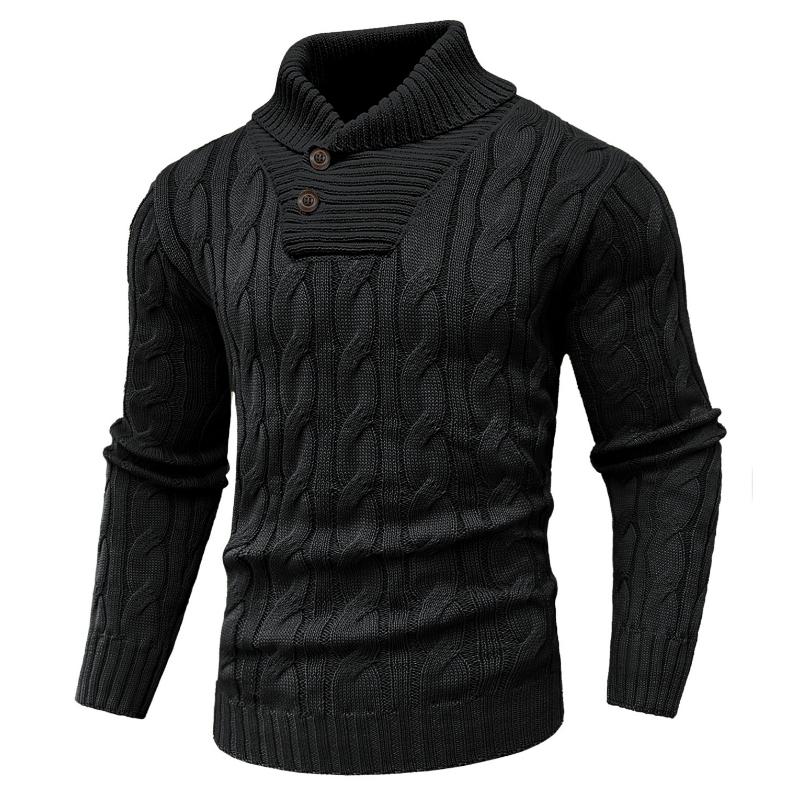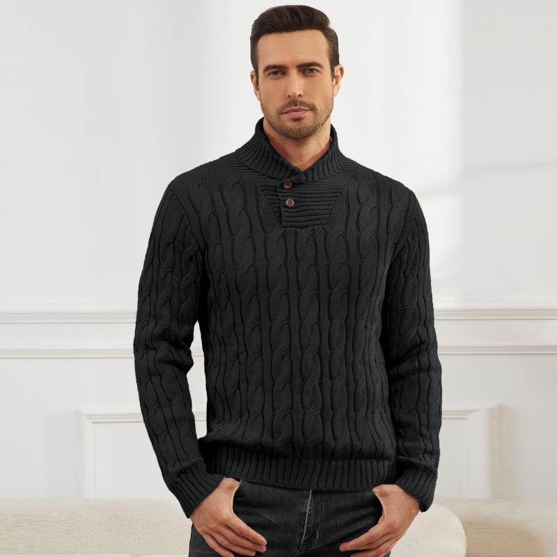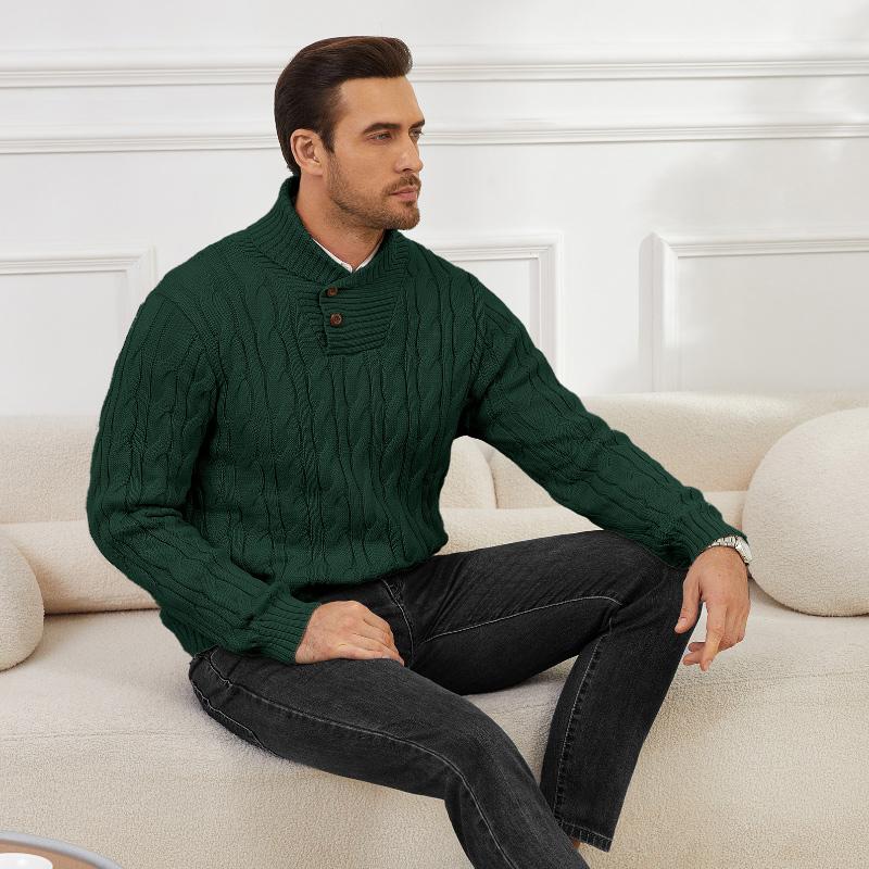 Zaitun Men's  Knit Pullover Sweater Casual Stand Collar Chunky Buttons Fall Winter Sweaters
