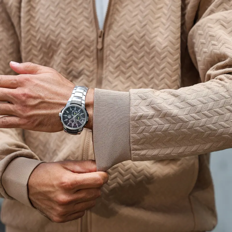 This Jacket it nice, stylish and the material feels great. I am 5’10 200 pnds and went with a the large which fits me perfectly.