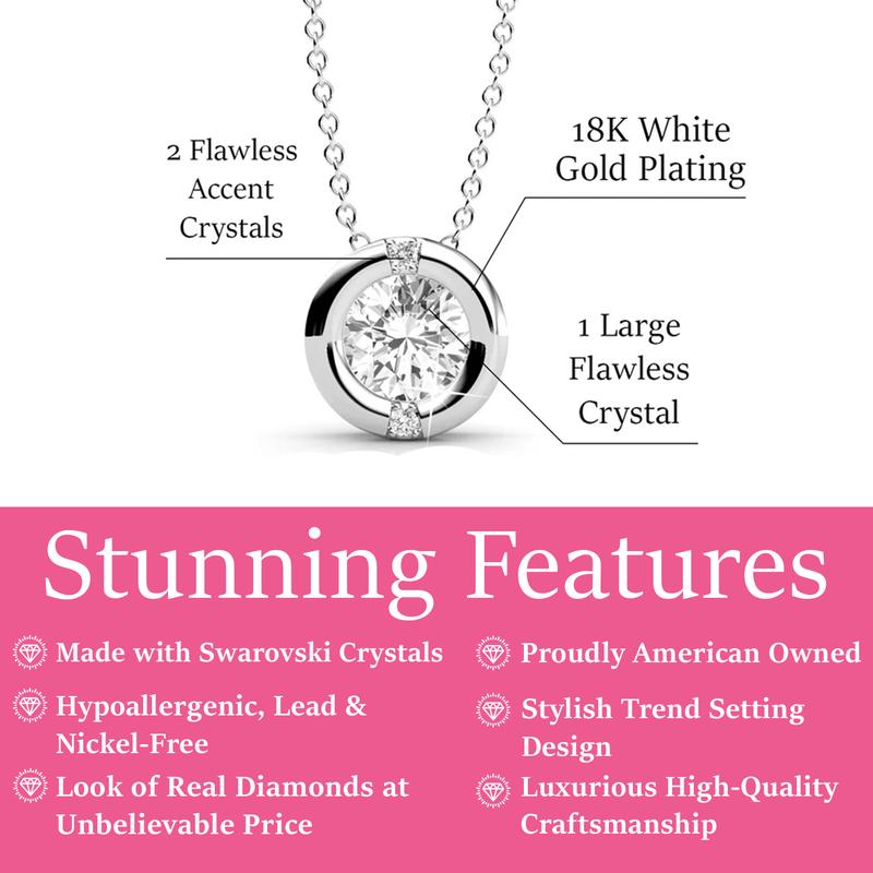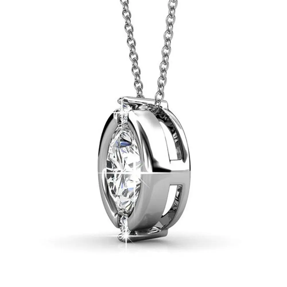 Zara 18k White Gold Plated Pendant Necklace with Round Cut Simulated Diamond Crystals